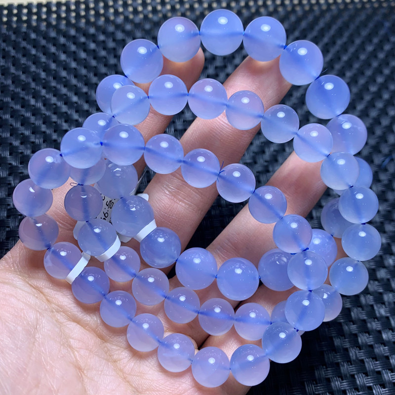 天然蓝玛瑙手链蓝色蛋白石玉髓手串水晶时尚饰品送生日礼物情侣款