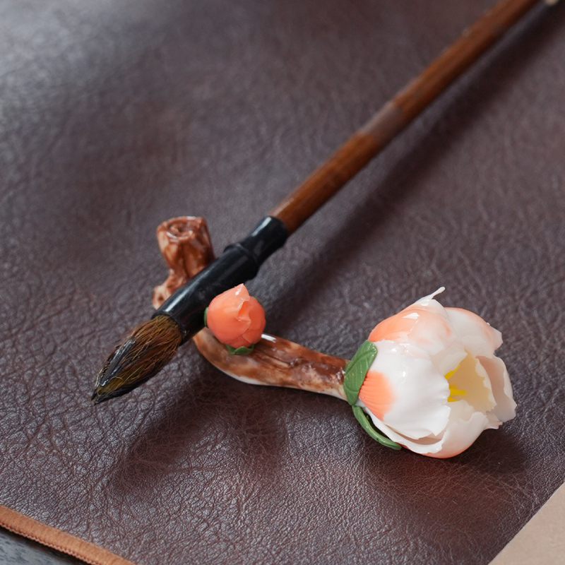 速发陶瓷新中式手工牡丹香插桌面摆件镇纸笔架笔托茶桌茶