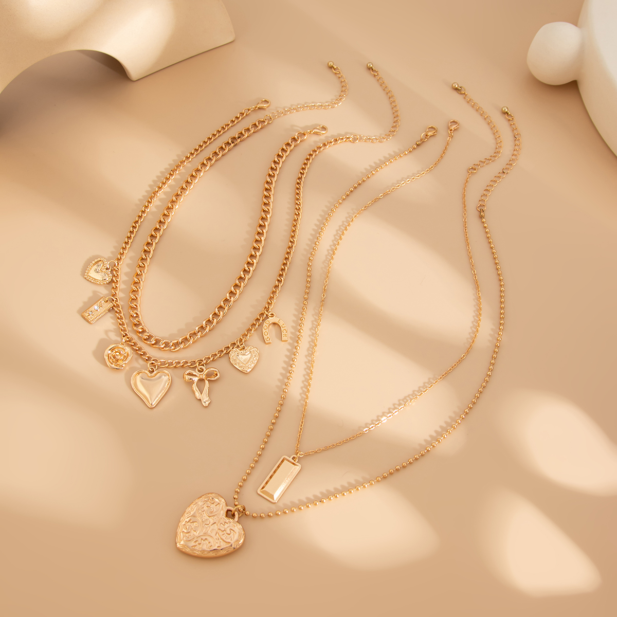 4件套桃心吊坠项链套装 2025夏季新潮嘻哈时尚叠戴锁骨链配饰品