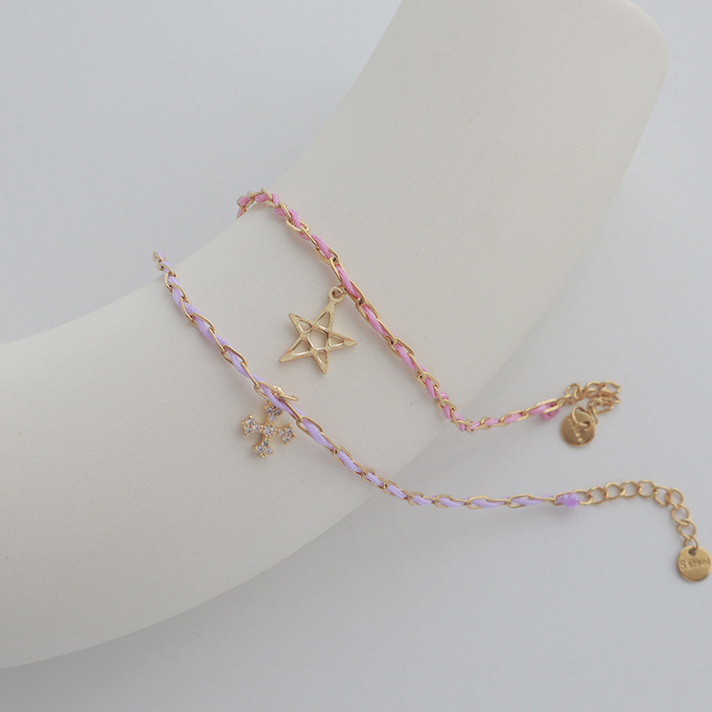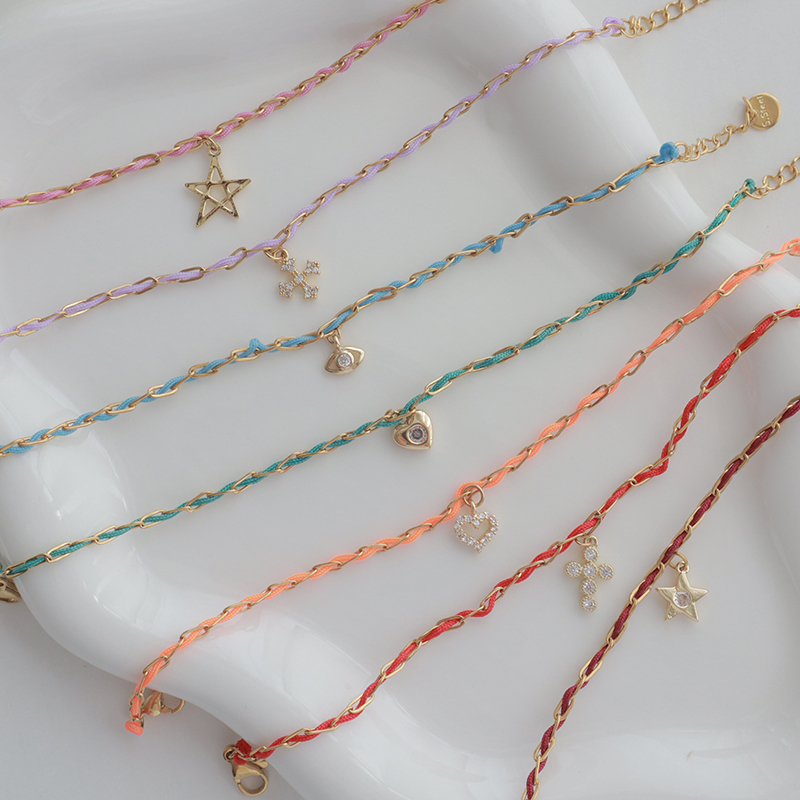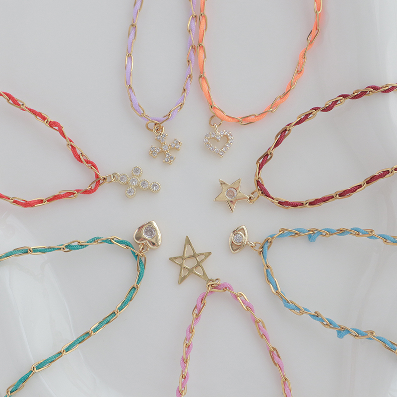 法式纯手工编织甜美时尚绳爱心月亮十字架带钻手链