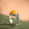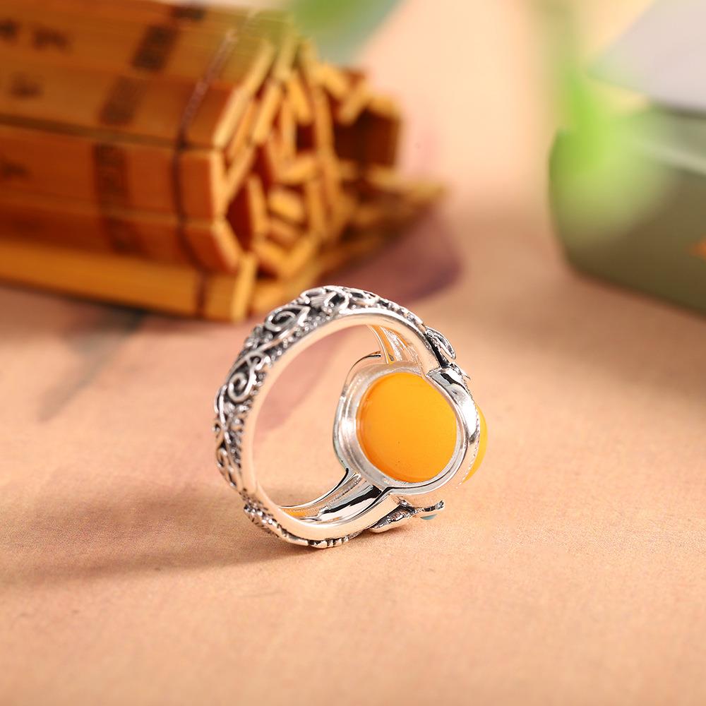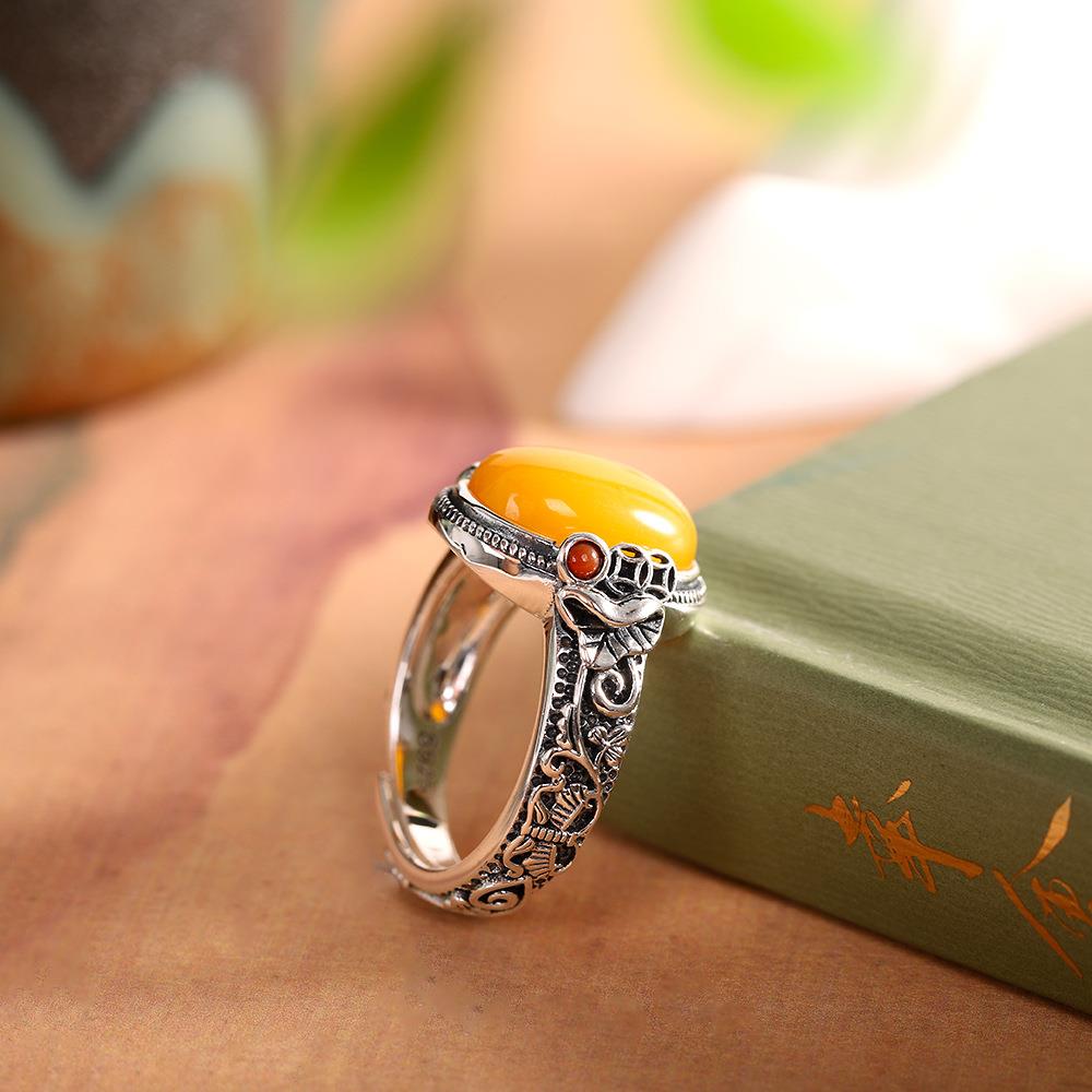 本命年民族风手饰925银复古做旧蜜蜡戒指开口女士指环食指戒礼物