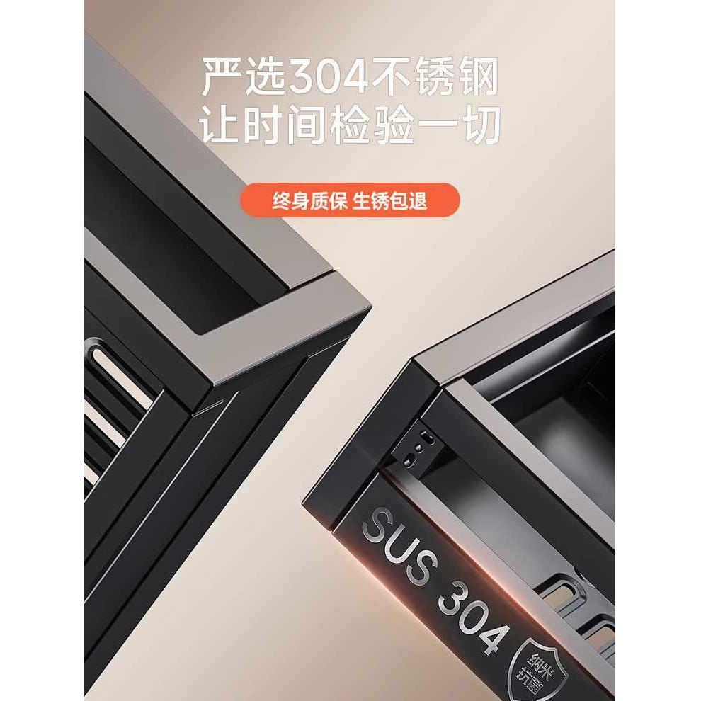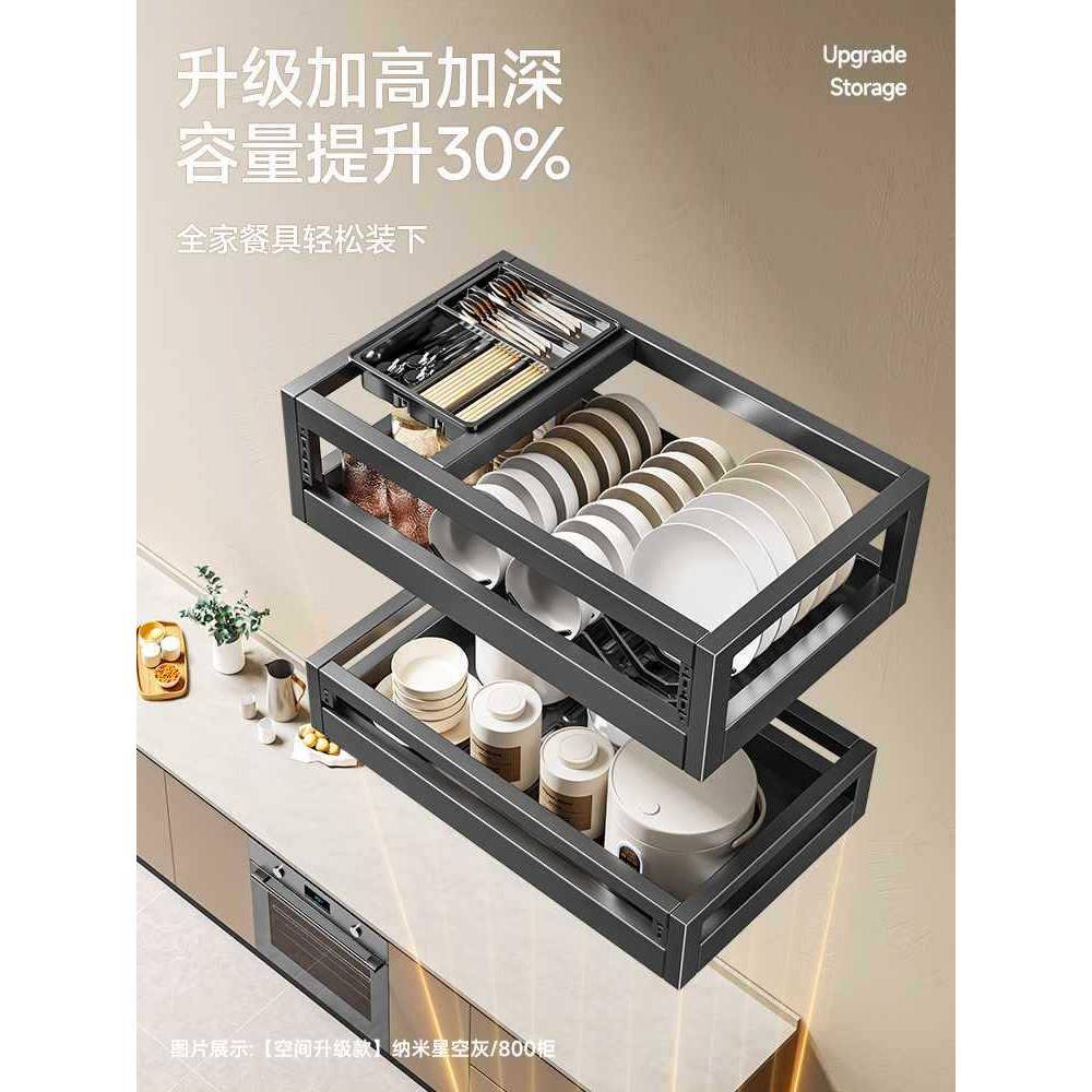 拉篮厨房橱柜304不锈钢双层碗篮抽屉式调料调味收纳碗碟内置碗架