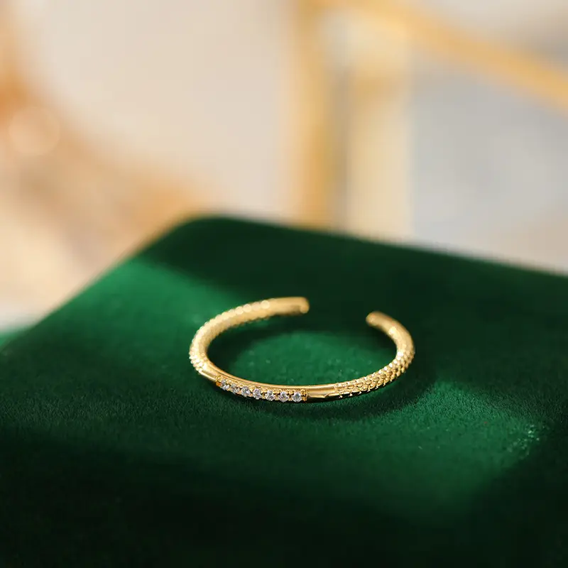 s925银素圈镶钻戒指女简约轻奢细款可叠戴显瘦开口指戒指环