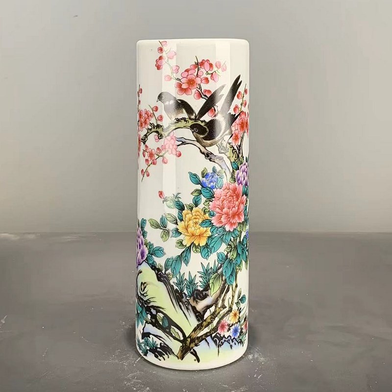 仿古大清乾隆年制粉彩花鸟笔筒 仿古瓷器仿古玩家装家居陶瓷摆件