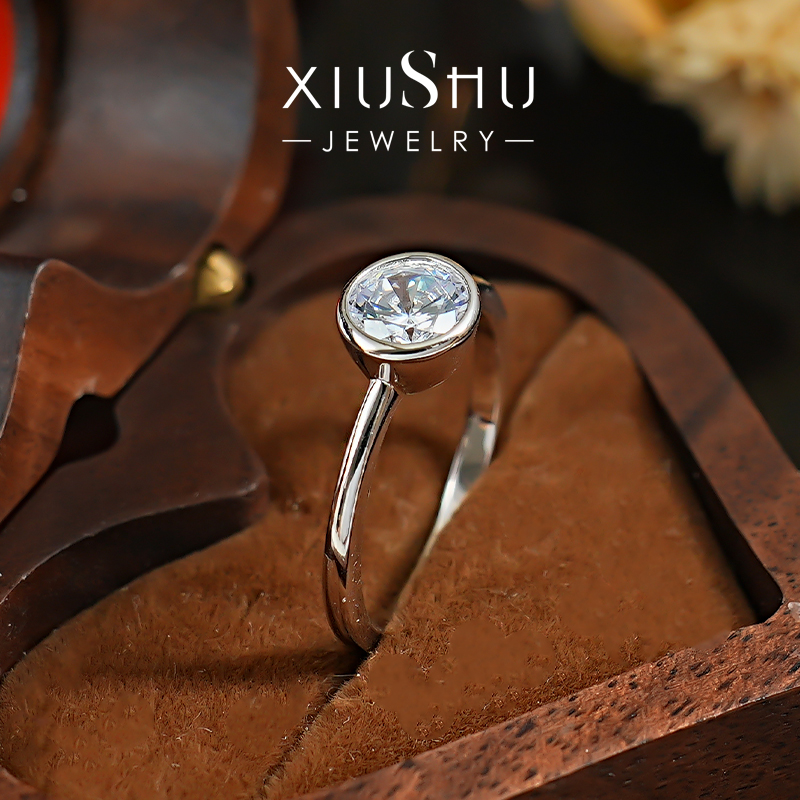 新款极简泡泡圆钻925银戒指镶嵌火彩高碳钻气质小众设计轻奢百搭