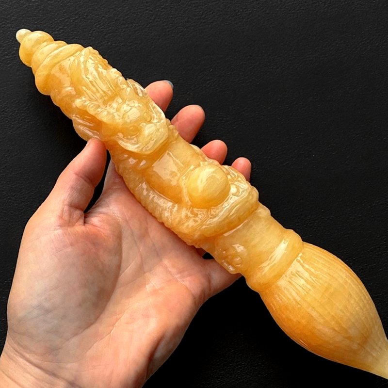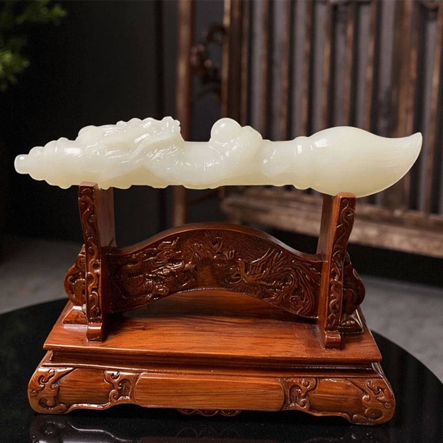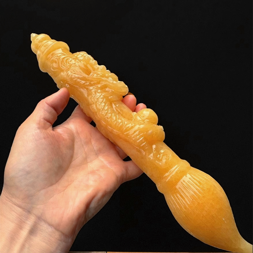 天然玉石盘龙毛笔摆件黄玉白玉发大笔财招财家居客厅办公金榜题名