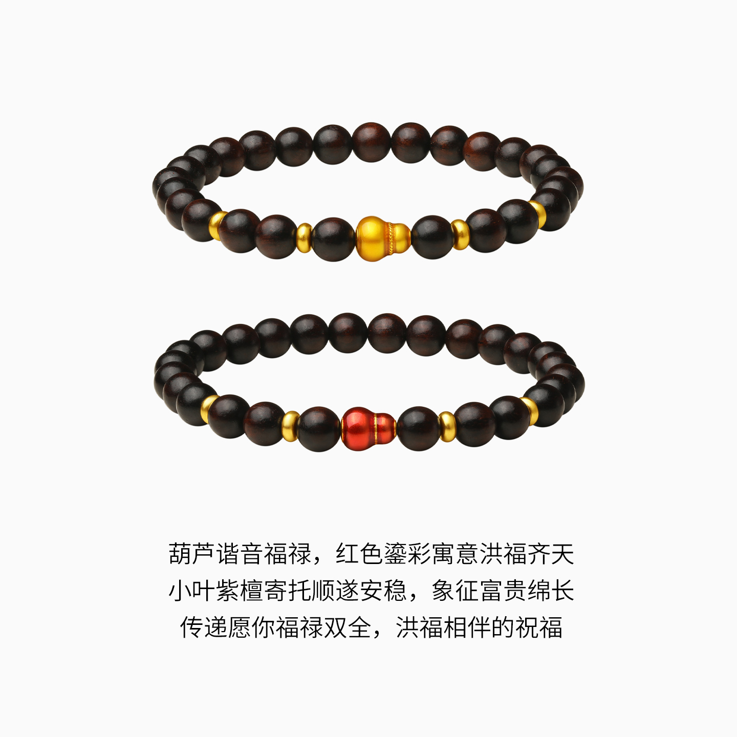 潮宏基臻金弘黄金小叶紫檀手链足金手串手饰葫芦福禄新中式礼物