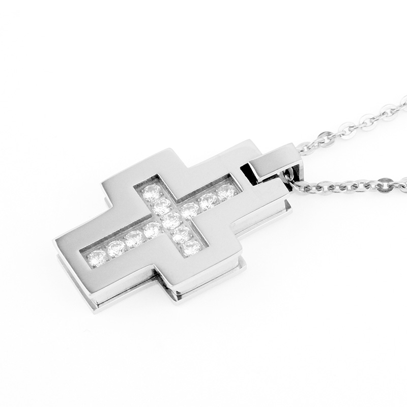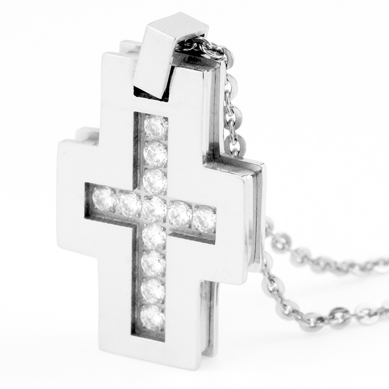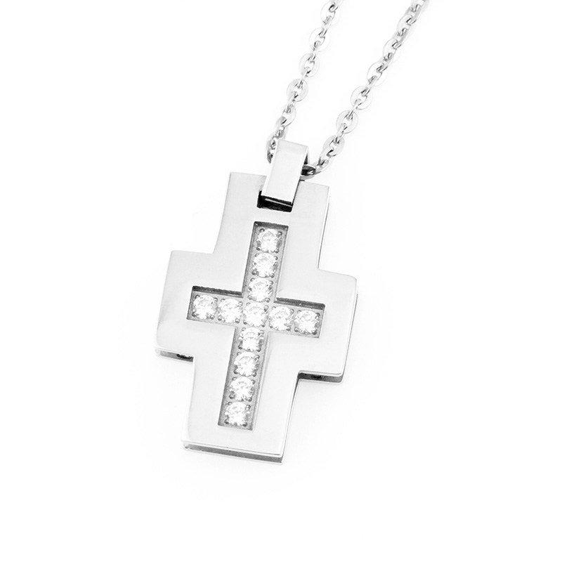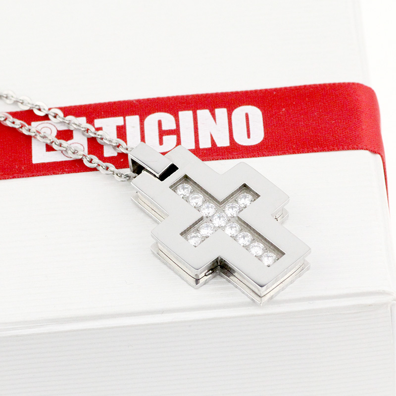 TICINO缇奇诺品牌欧美大气十字架镶嵌精钢信仰吊坠饰品生日礼物
