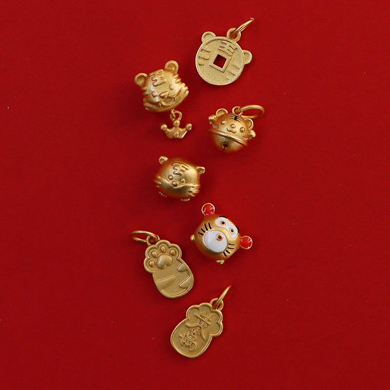铜镀金本命年生肖虎大孔珠子挂件diy手绳手链配珠情侣可爱礼物隔