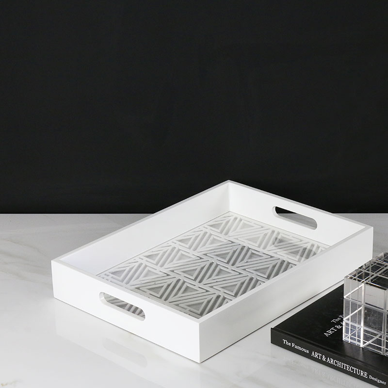 现代白色几何长方形托盘家居软装饰品收纳样板房间桌面茶几摆件