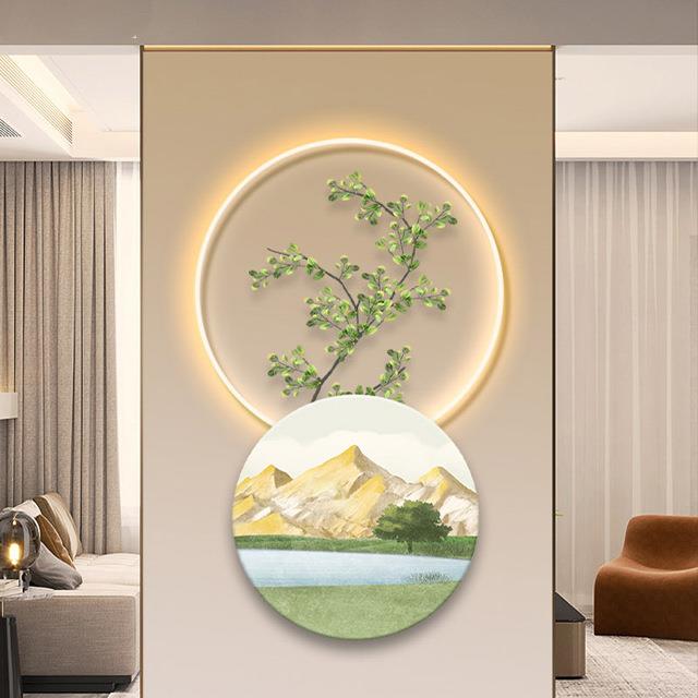 金山绿植入户玄关挂画led灯光餐厅客厅装饰画简约现代北欧风壁画