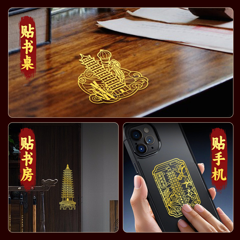 文昌塔摆件金榜题名文昌笔挂件学生贴书桌贴画孩子金属贴纸初高中
