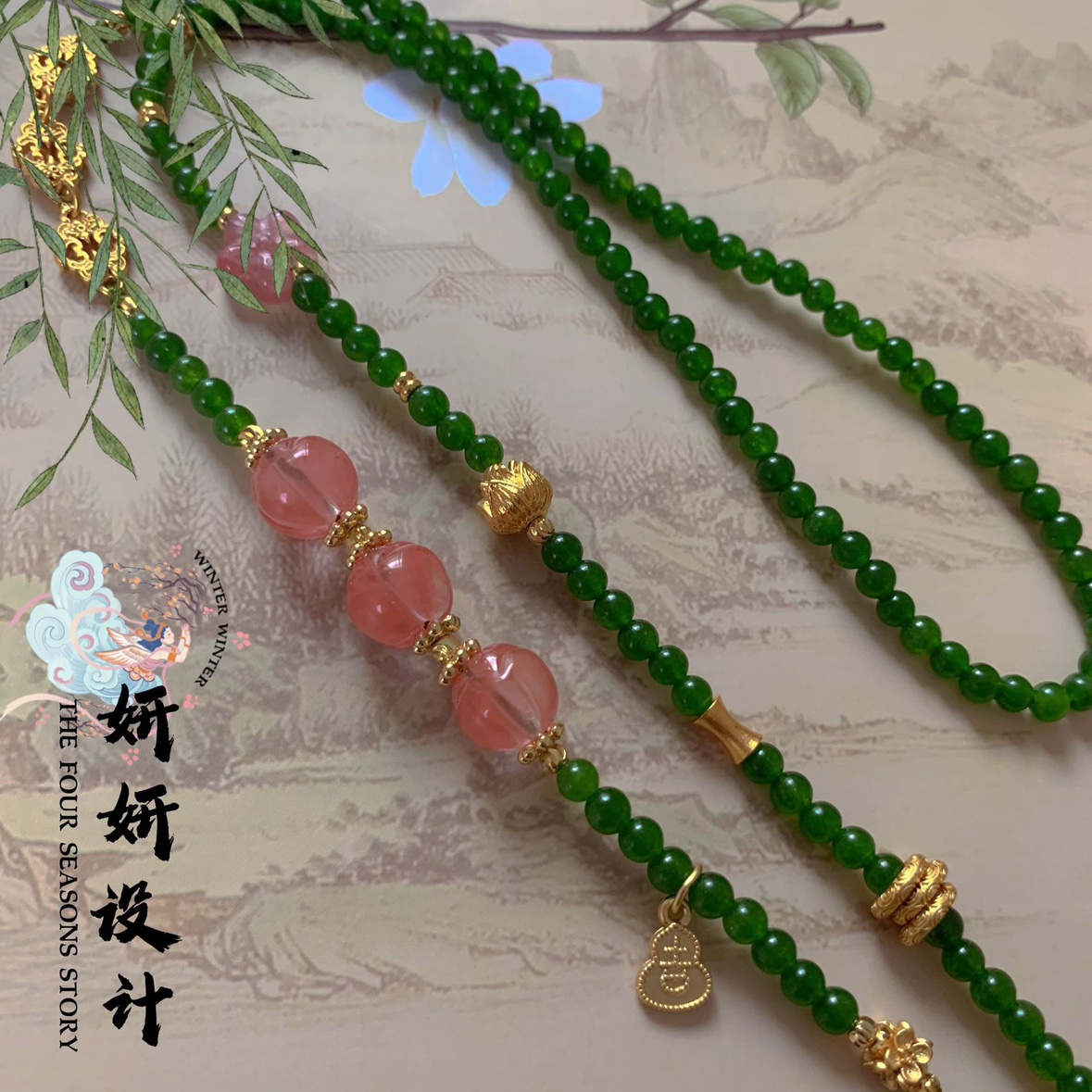国风新中式蜜桃撞色小米珠链条如意葫芦项链可拆卸吊坠毛衣链定制