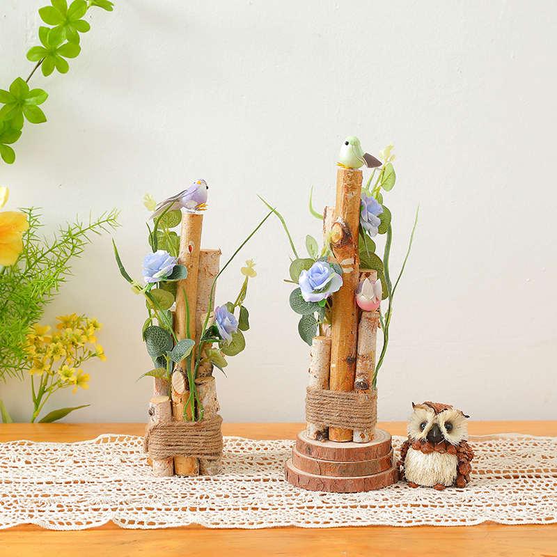 可爱树桩小鸟摆件动物创意仿真花盆盆景摆设客厅阳台幼儿园装饰品