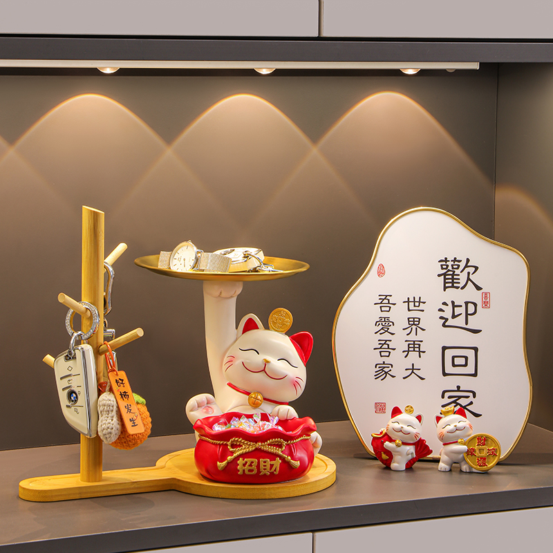 招财猫钥匙收纳玄关摆件入户门口鞋柜客厅家居装饰品乔迁新居礼品