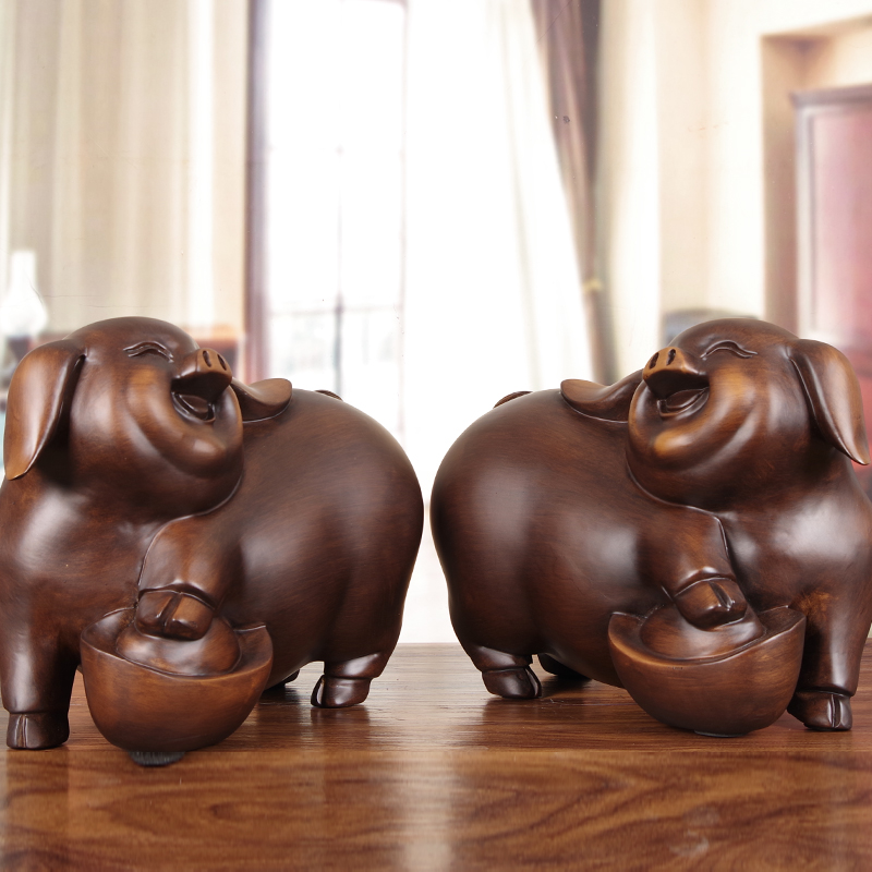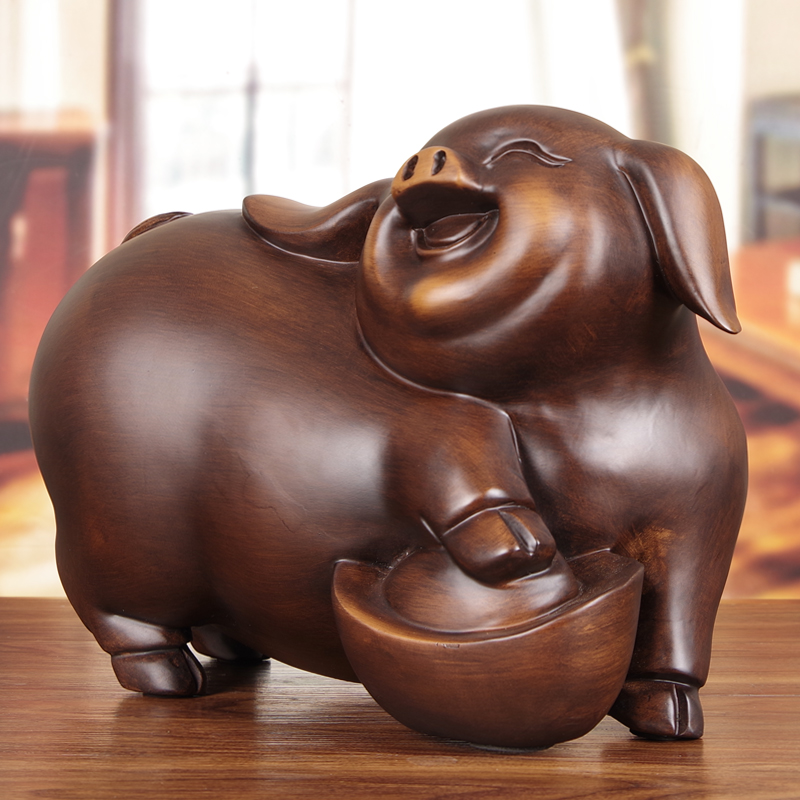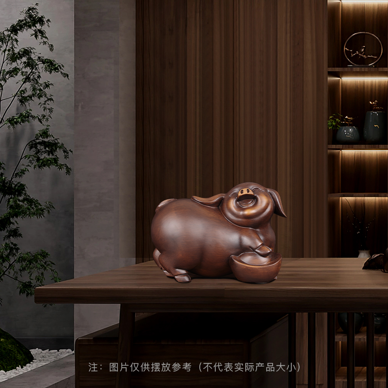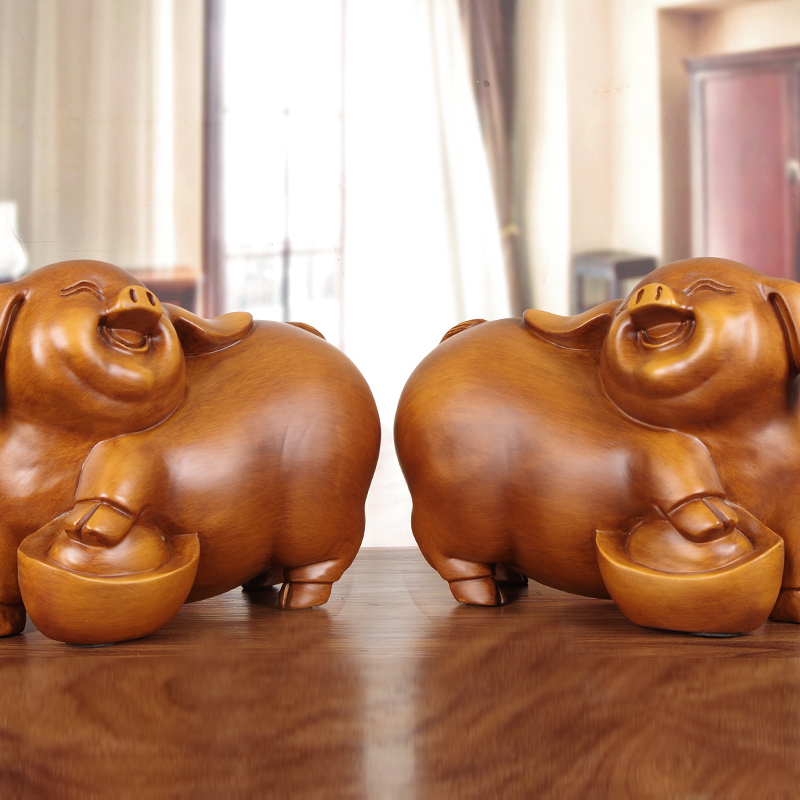 实木雕猪摆件招财猪木质手工艺品生肖猪客厅玄关酒柜收银台装饰品