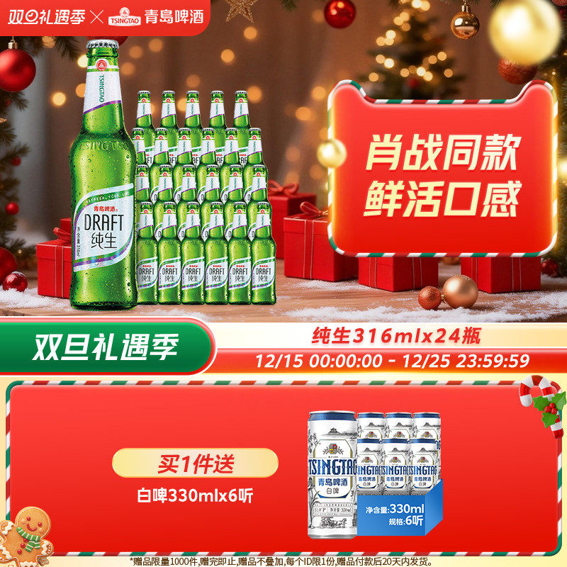 【肖战同款】青岛啤酒纯生316ml*24瓶