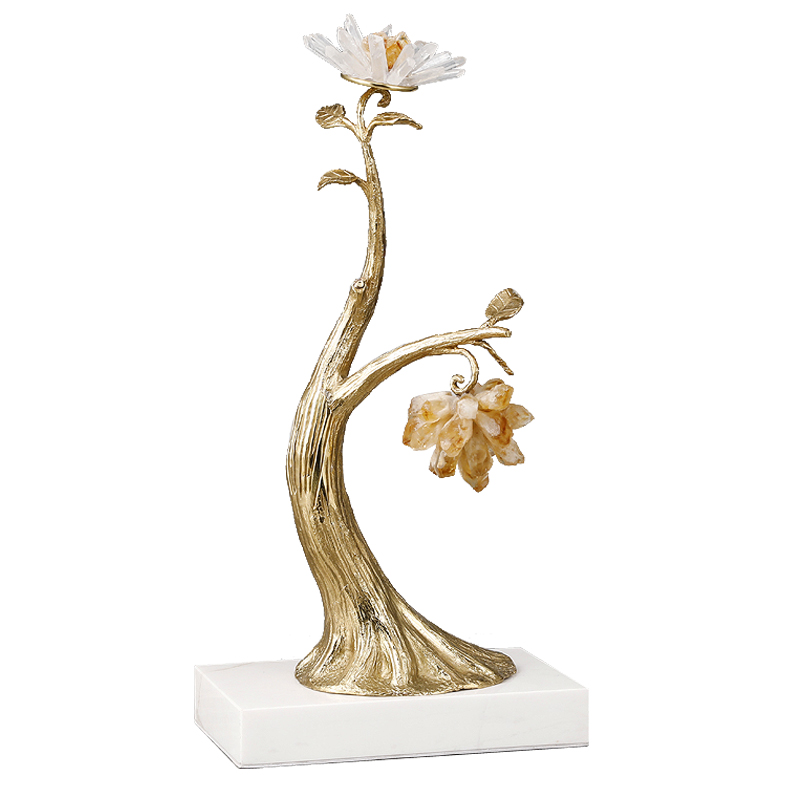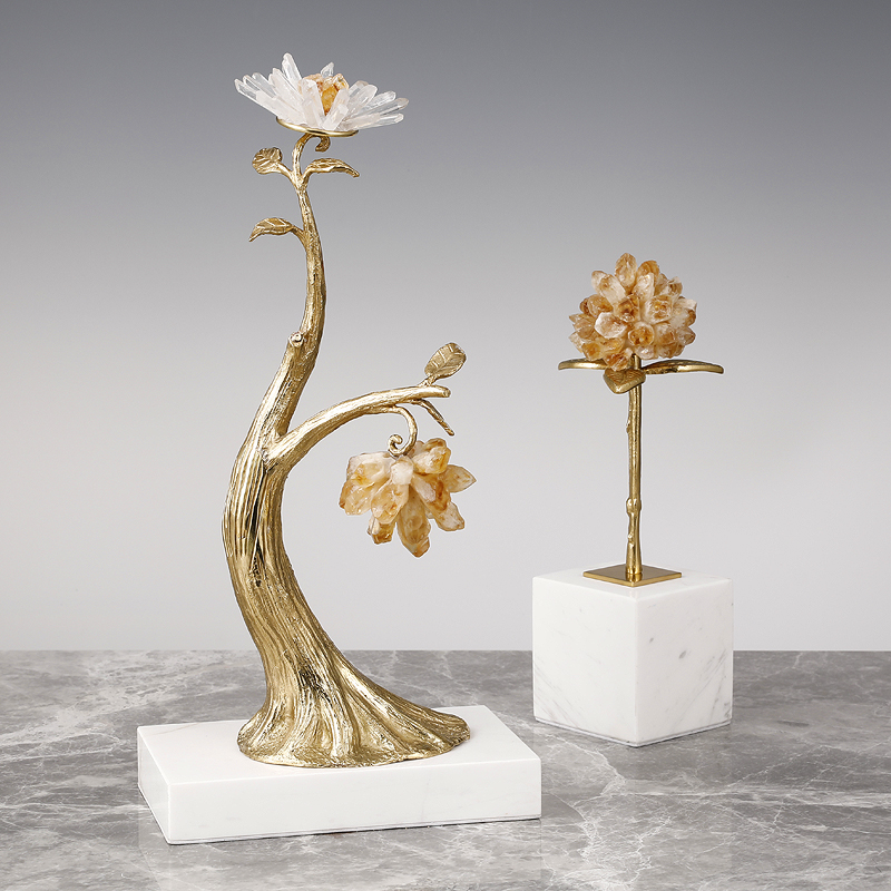 天然黄金水晶花球全铜招财树入户博古柜家居桌面摆件奢华软装饰品