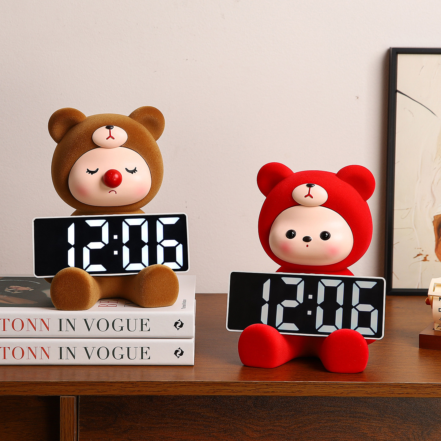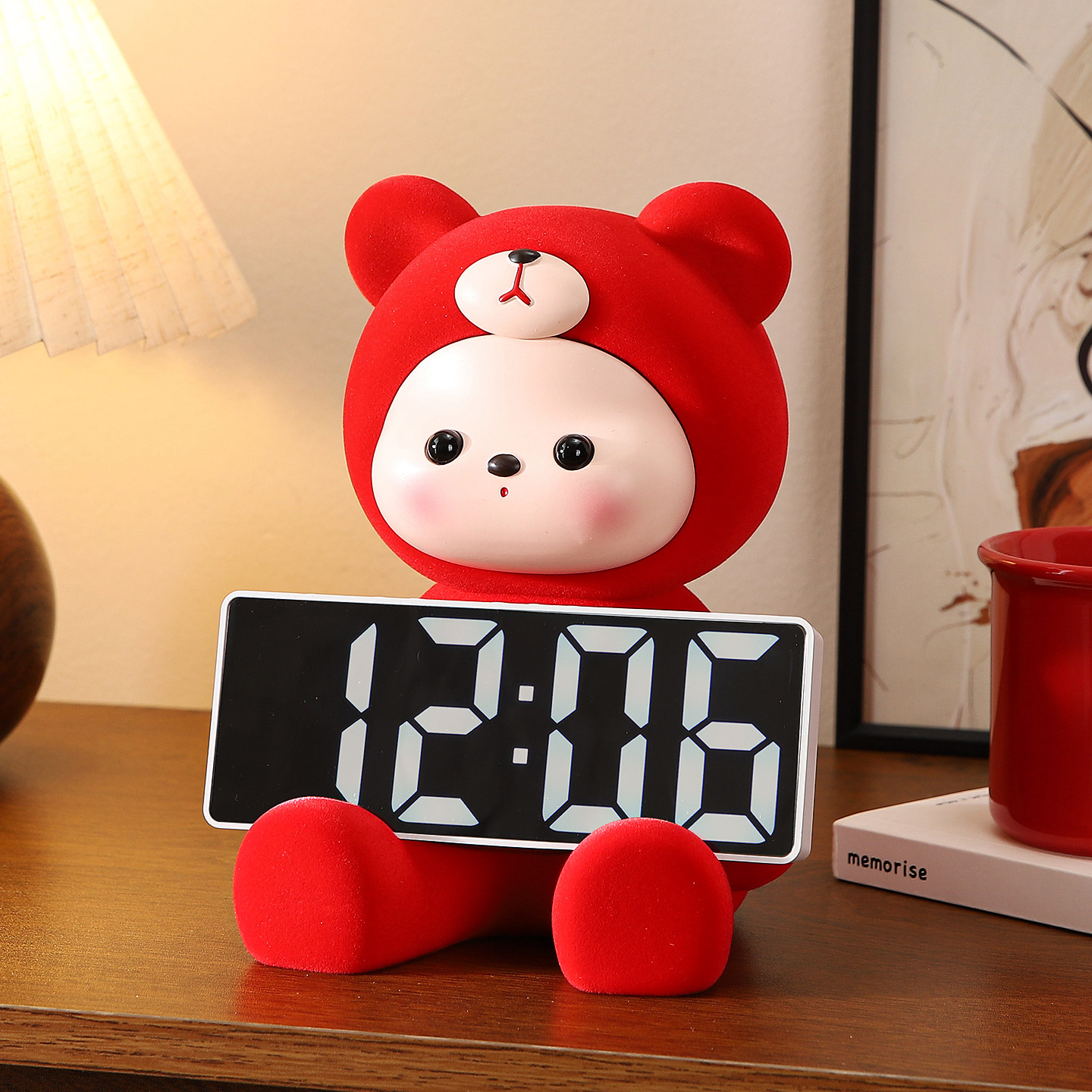2026新年装饰品氛围布置家里轻奢高档客厅电视柜红色兔子时钟摆件