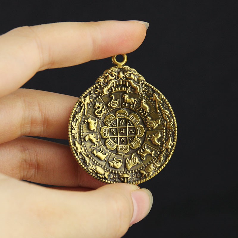 现货速发民族风铜制九宫挂牌十二生肖腰牌复古黄铜吊坠挂件个性挂