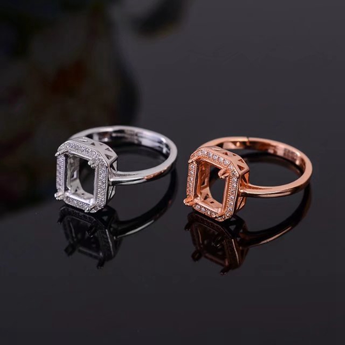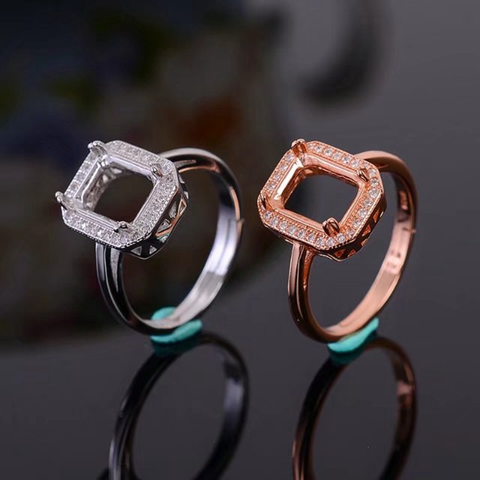 925纯银女戒指空托 7x9mm方形戒指托 代镶嵌托帕石石榴石紫黄水晶