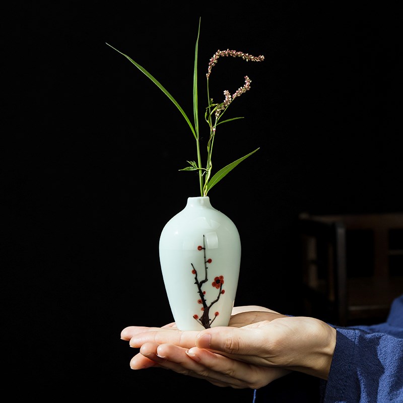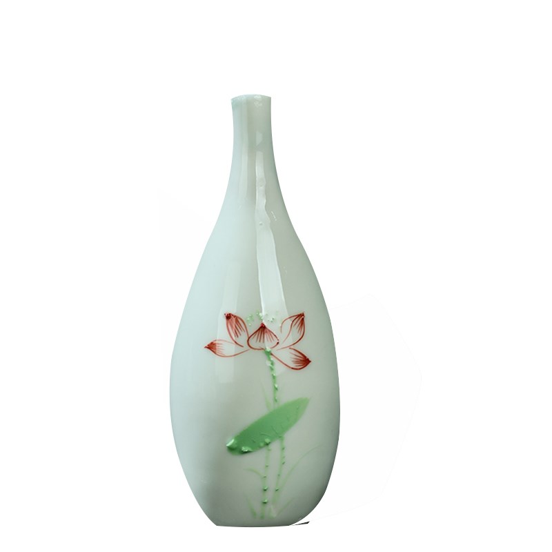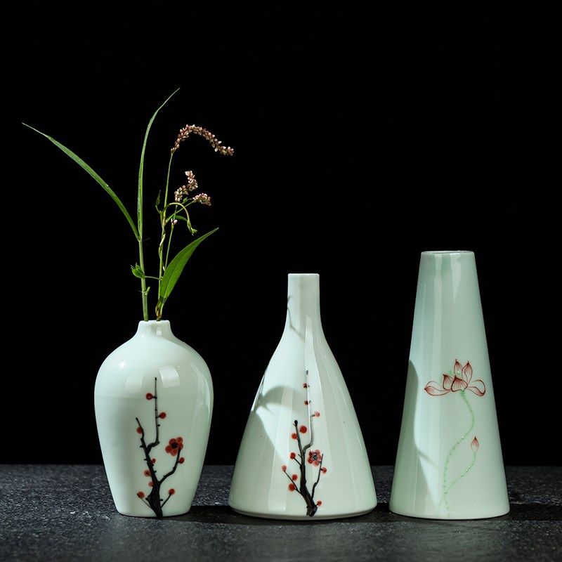 陶瓷手绘莲花小花瓶茶室茶盘茶宠桌面摆件干花水培插花器客厅装饰