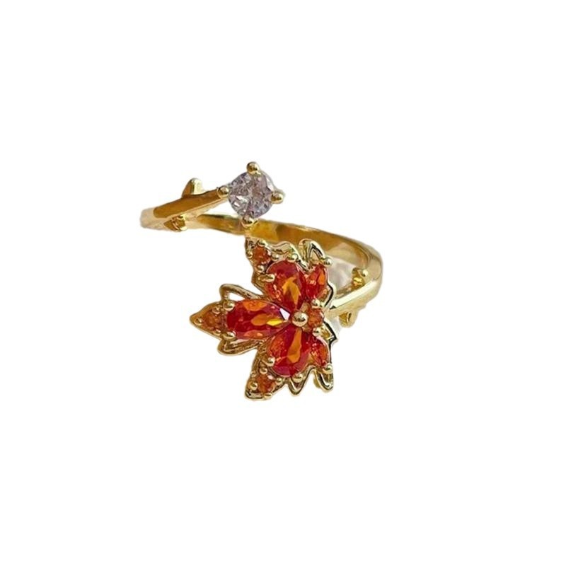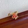 进口超好看的红色枫叶戒指中式独特设计感时尚精致个性金色开口食