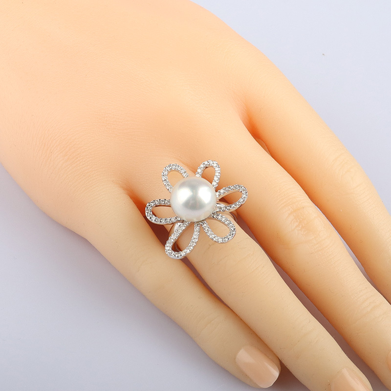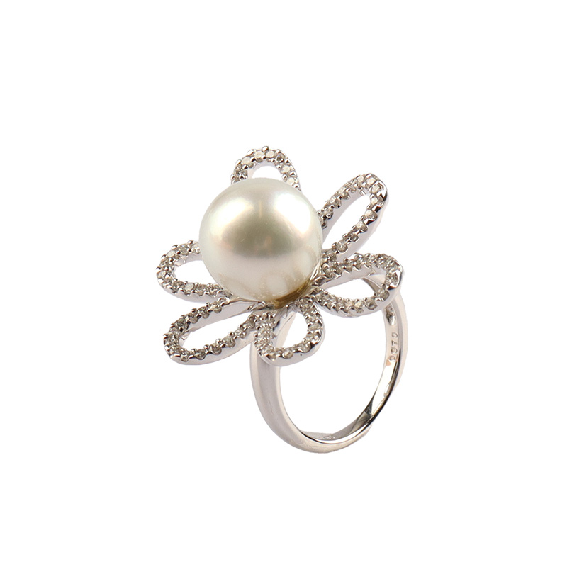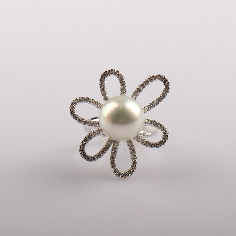 【自营】中古95新日本进口商品花形南洋珍珠钻石750白金50号戒指