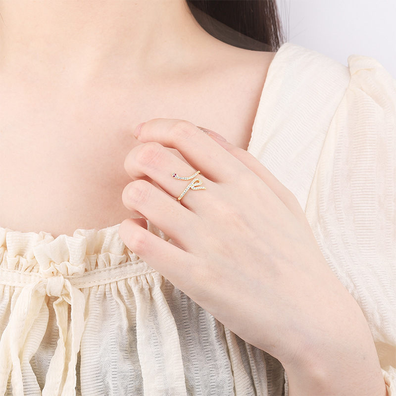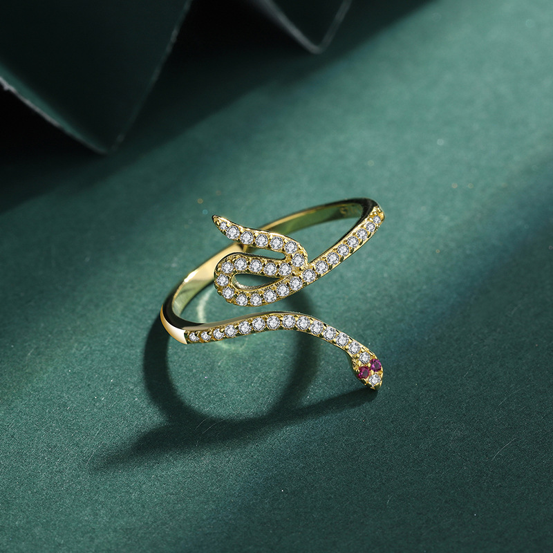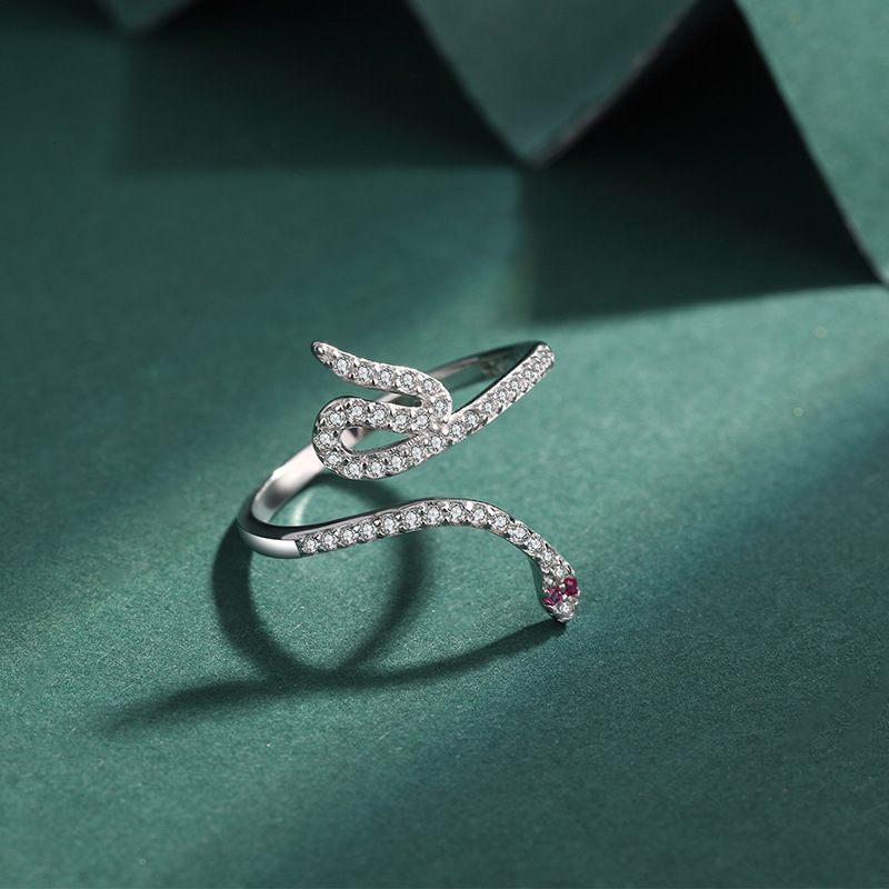 TOOK Otnament新款S925纯银蛇形镶钻戒指女 时尚百搭高级感送女友