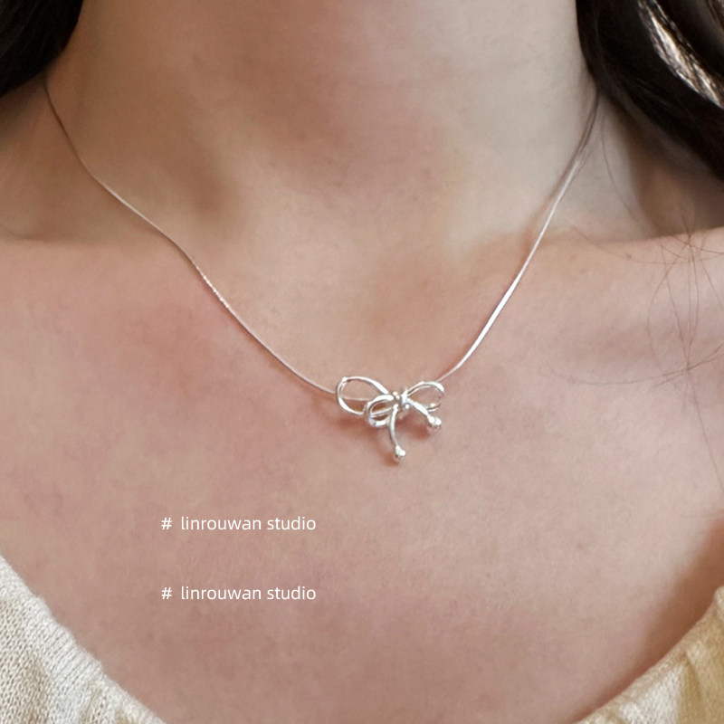 奥利千金 925纯银蝴蝶结蛇骨项链女简约甜美小清新锁骨链毛衣链