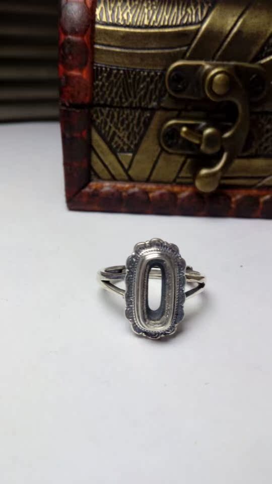 925纯银戒指空托 复古 尼泊尔风格 细长花边 开口 女款 4.5*11.5