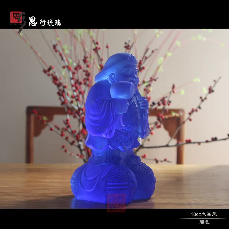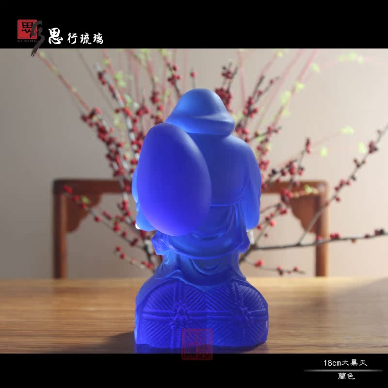 思行琉璃 18cm大黑天财神琉璃佛像摆件 居家客厅佛堂家用包邮