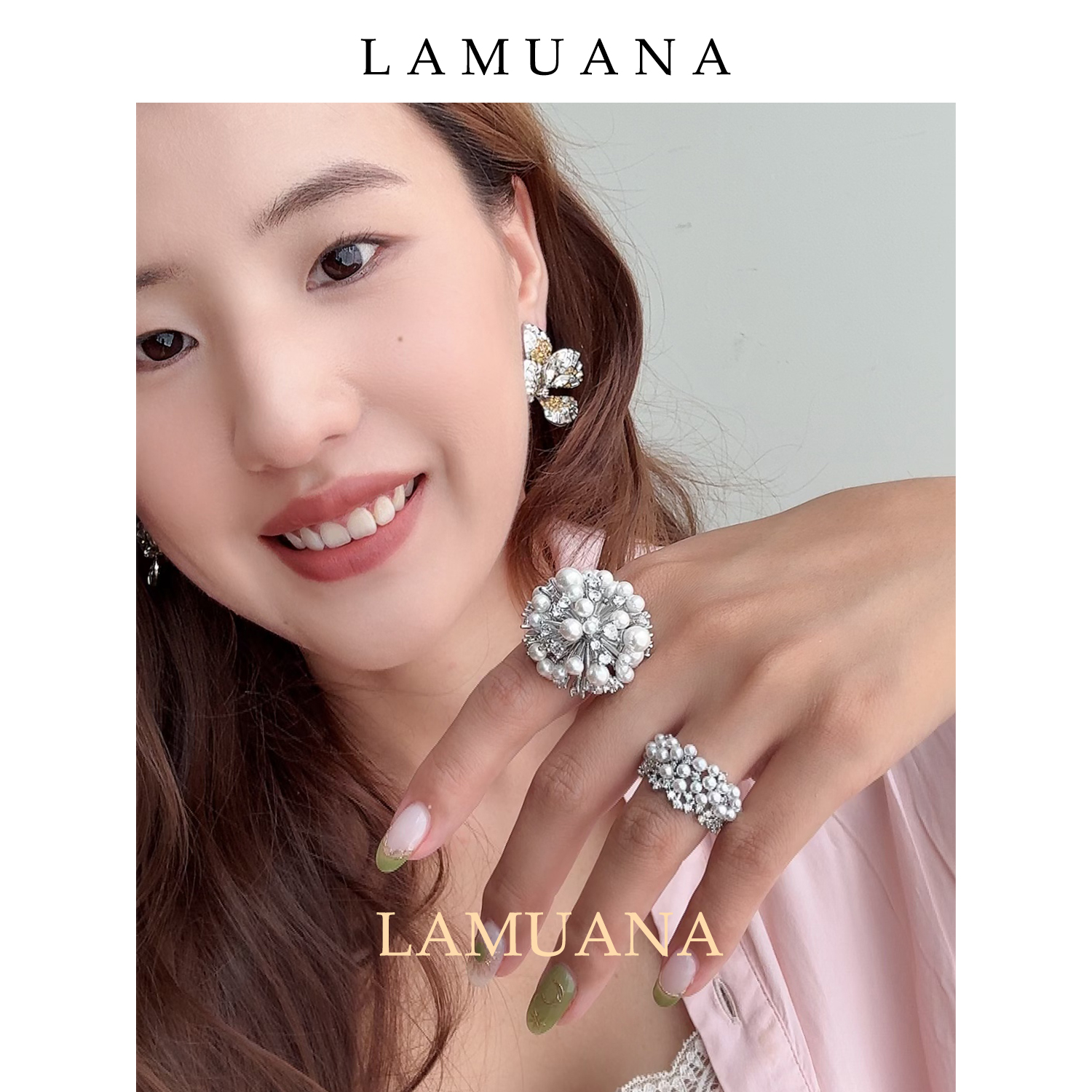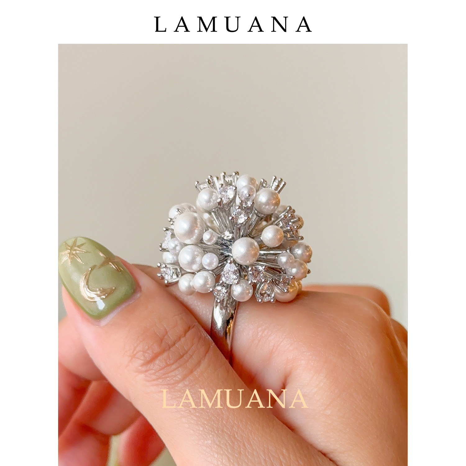 LAMUANA珍珠盐花球戒指小众设计感高级食指戒轻奢感夸张时尚83045