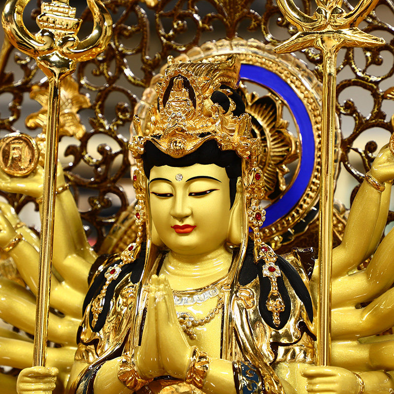 台湾千手千眼观世音菩萨 千手观音佛像 纯铜鎏金千手观音站像摆件