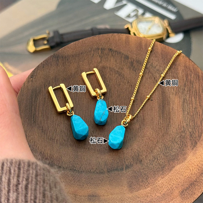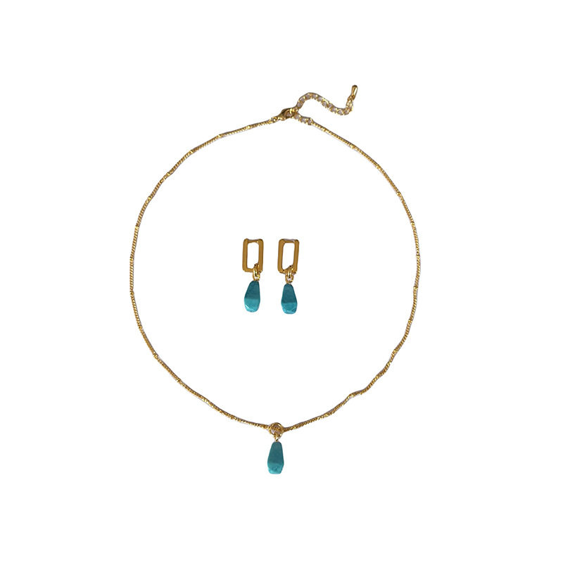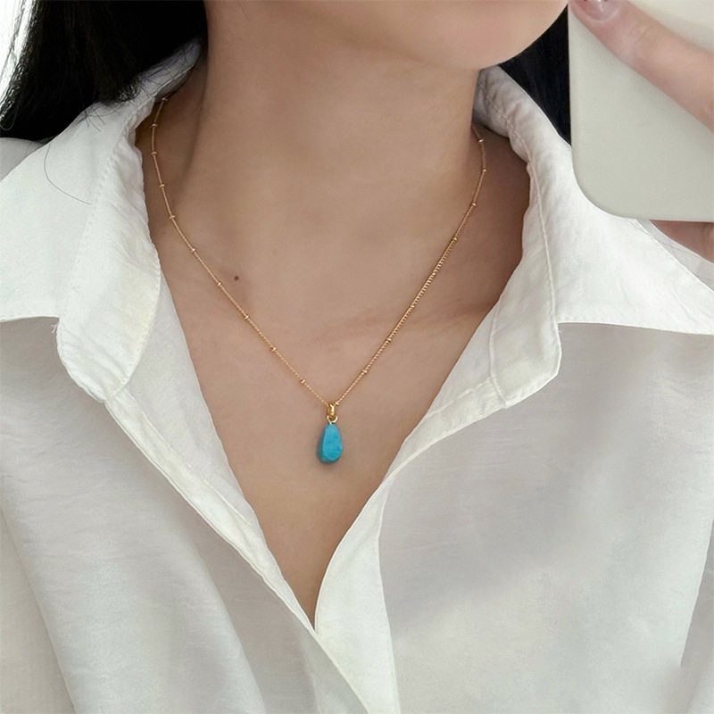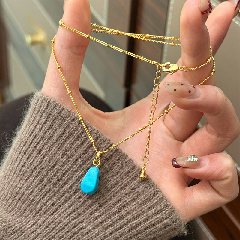 新款欧美时尚蓝色松石水滴吊坠项链简约高级感气质百搭复古锁骨链
