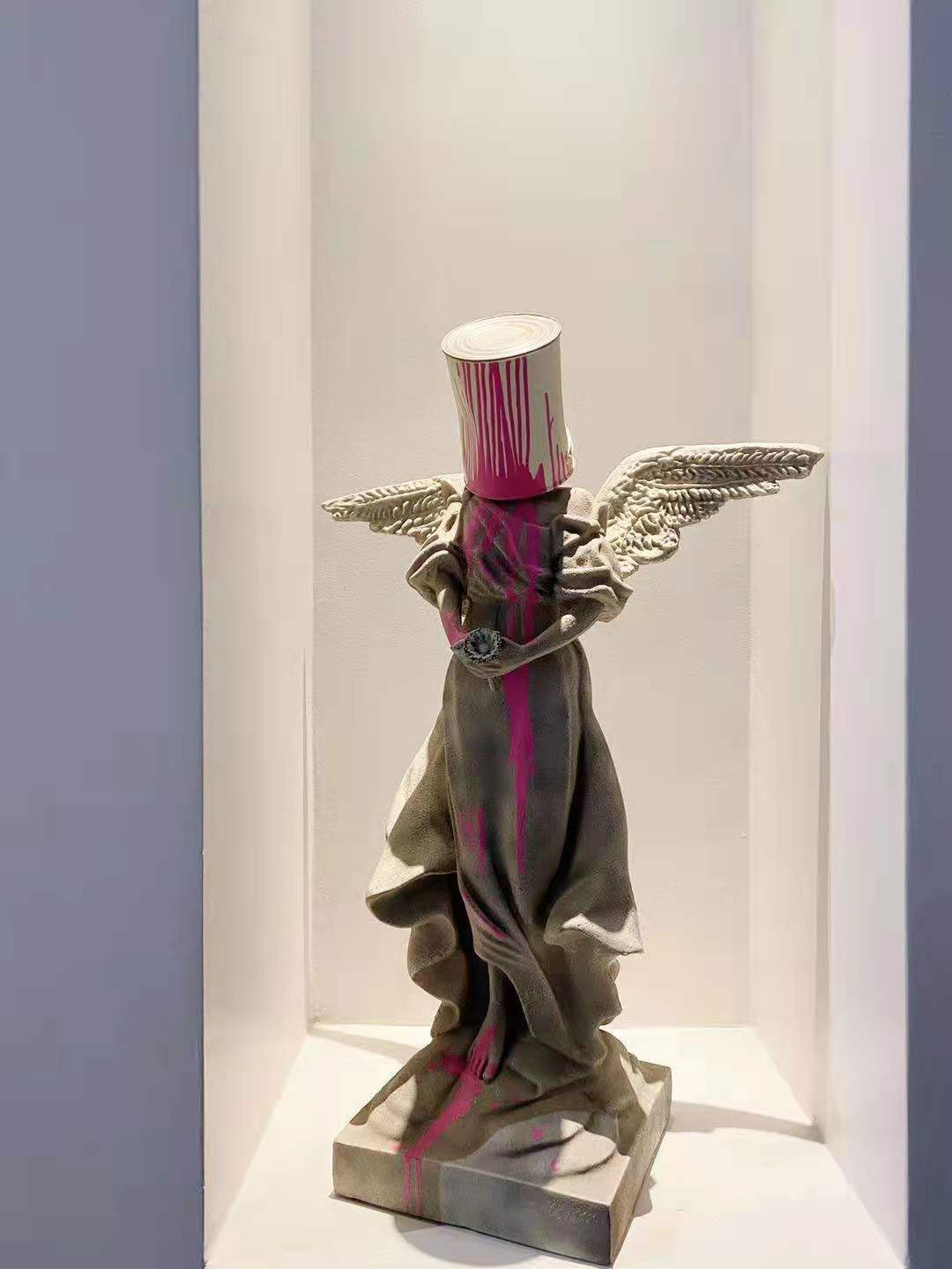 Banksy铁桶油漆天使手办灰色潮流公仔摆件雕塑ins送礼班克斯西