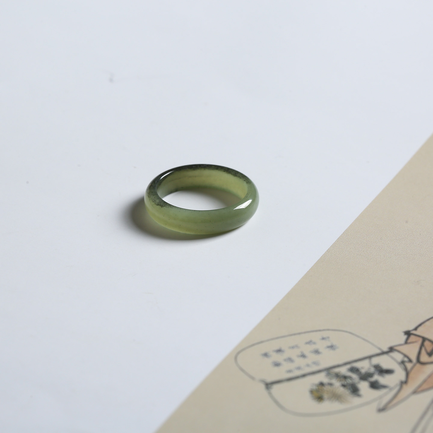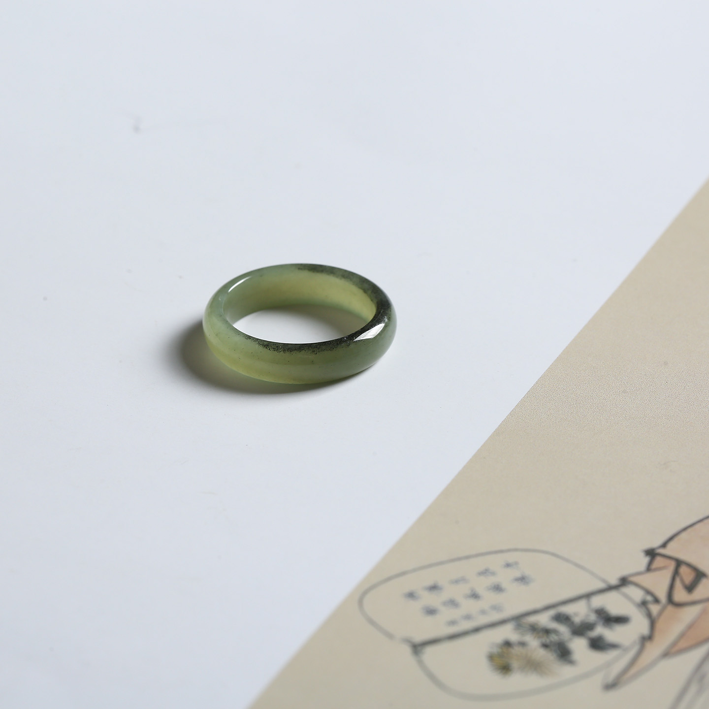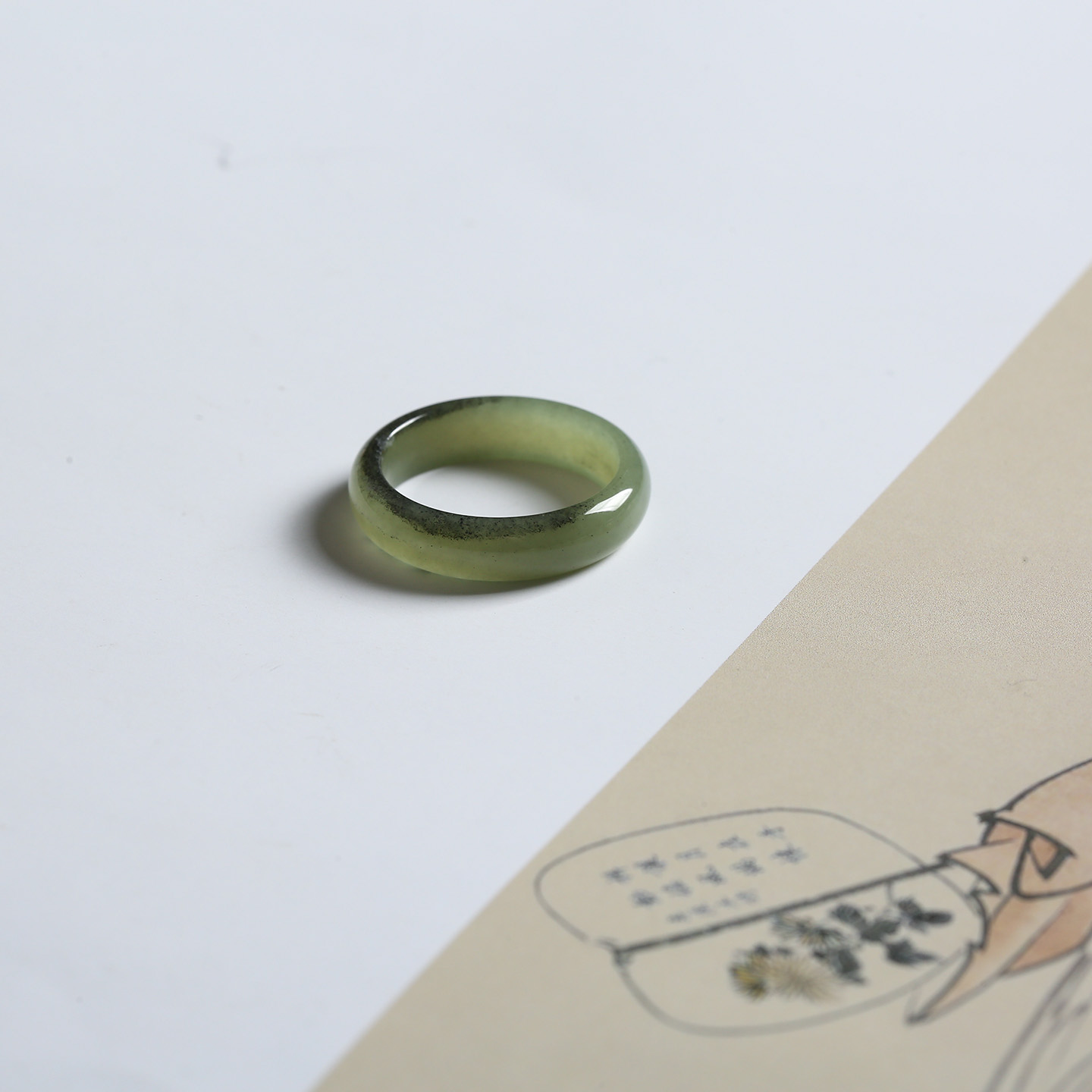 20号戒指 新疆和田玉青花泥鳅背圆弧素圈指环 622