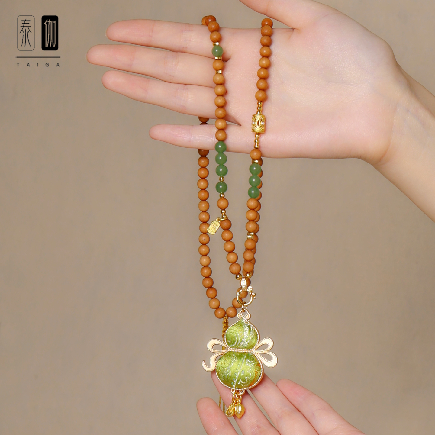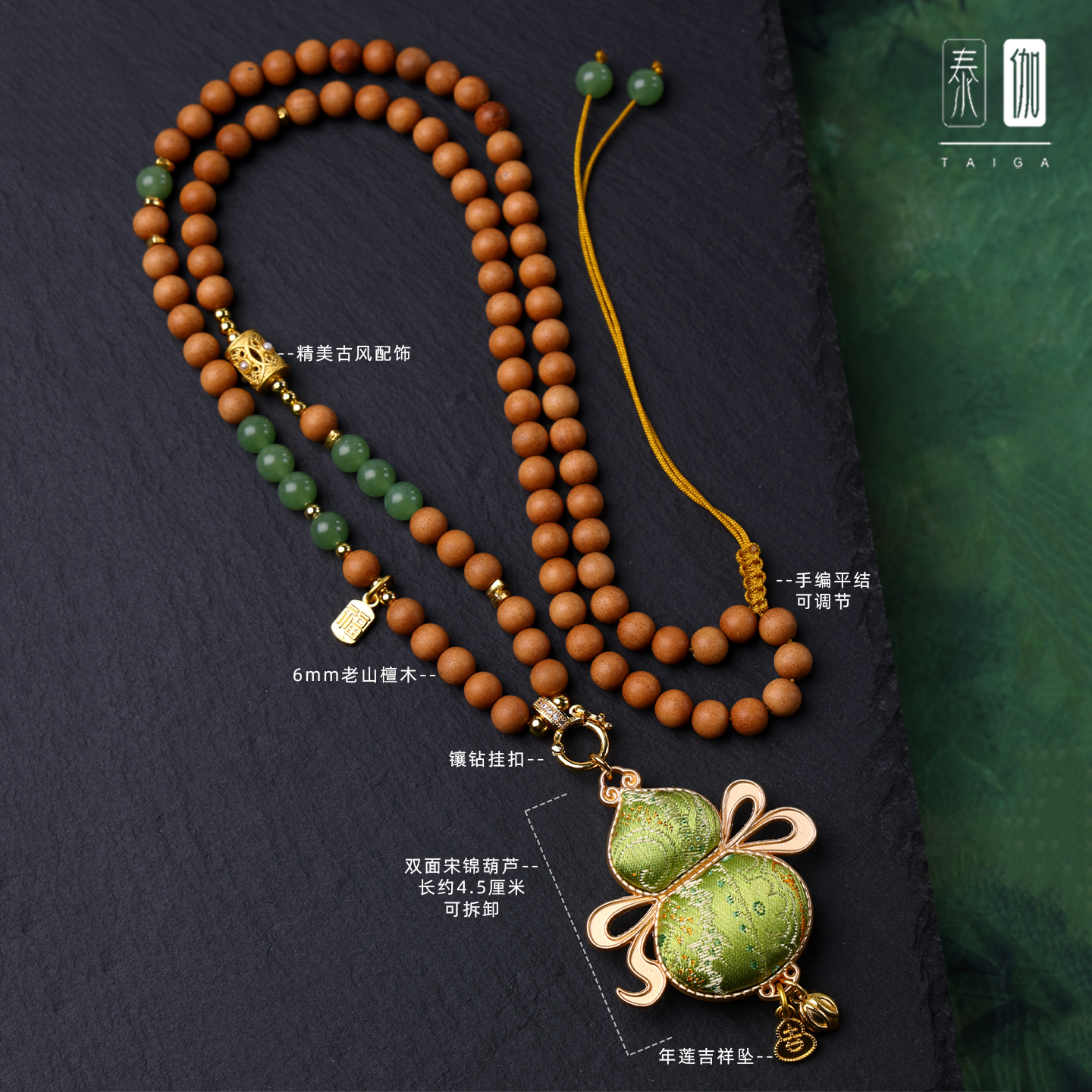 非遗手工双面宋锦葫芦吊坠檀木项链挂链中国风新中式旗袍汉服配链