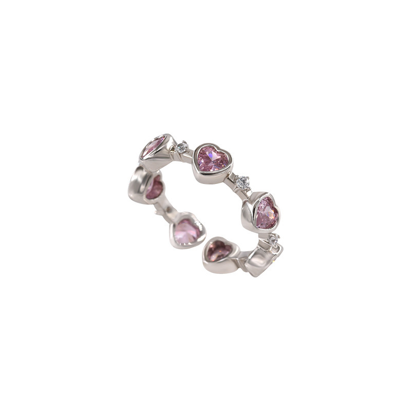 2023新款粉色钻爱心戒指 女小众设计感指环时尚个性食指戒ins