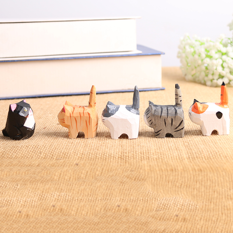 手工木雕小猫咪桌面摆件木质雕刻工艺品呆萌可爱创意礼品玩具玩偶
