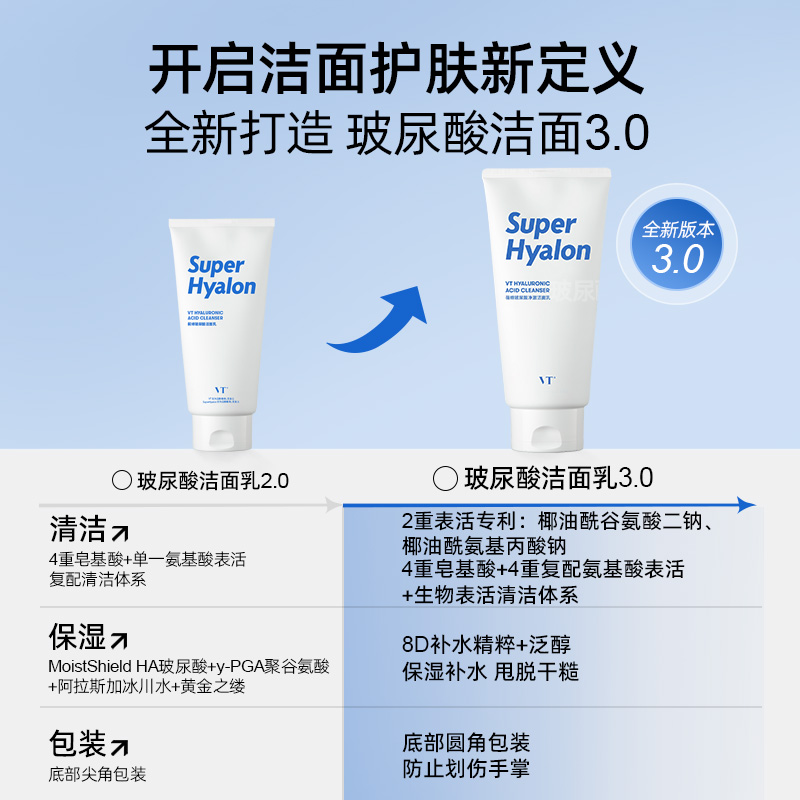 VT玻尿酸大白洗面奶细腻清洁大容量洁面乳多肤质适用保湿补水护肤