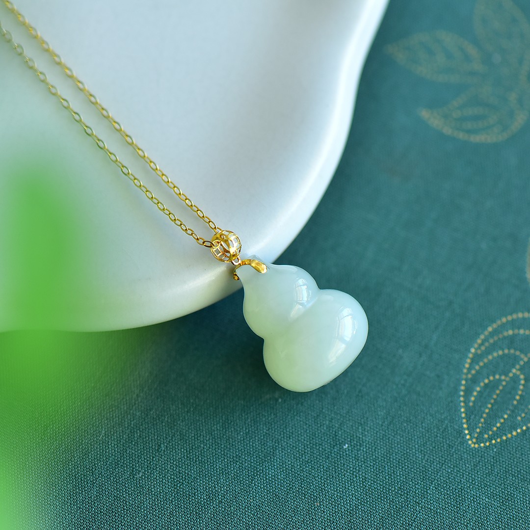带18k金扣和田玉葫芦吊坠时尚简约项链锁骨链天然玉石挂坠女