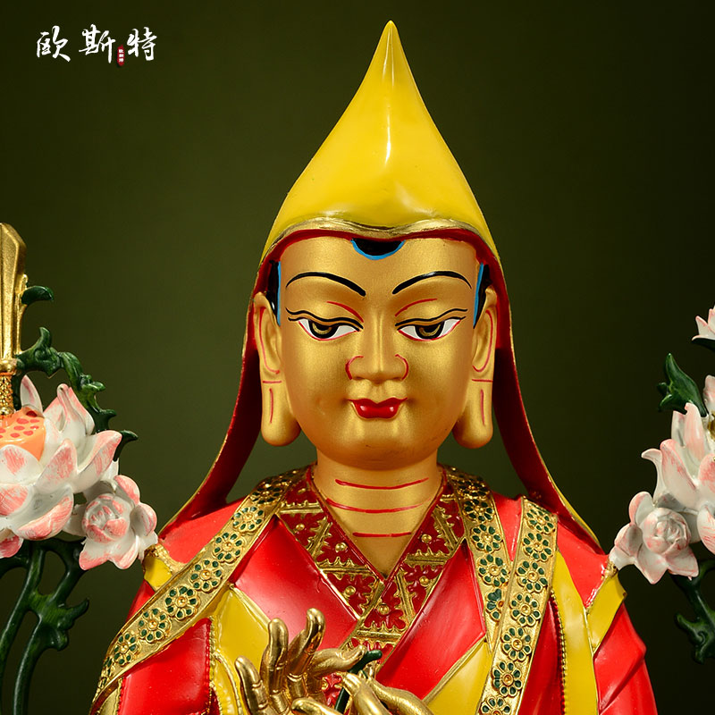欧斯特彩绘《宗喀巴》精工铜雕室内家用《宗喀巴三师徒》铜摆件