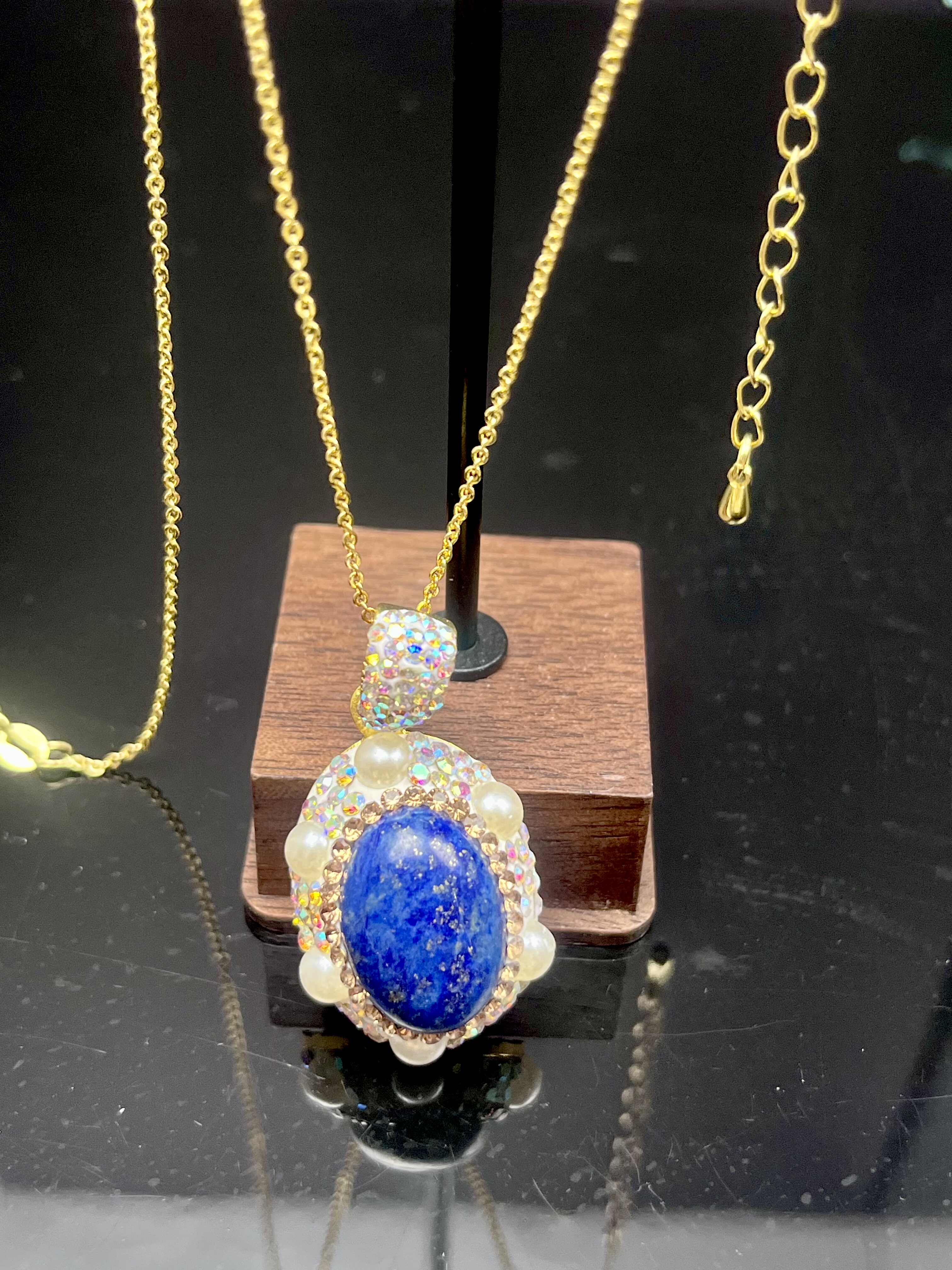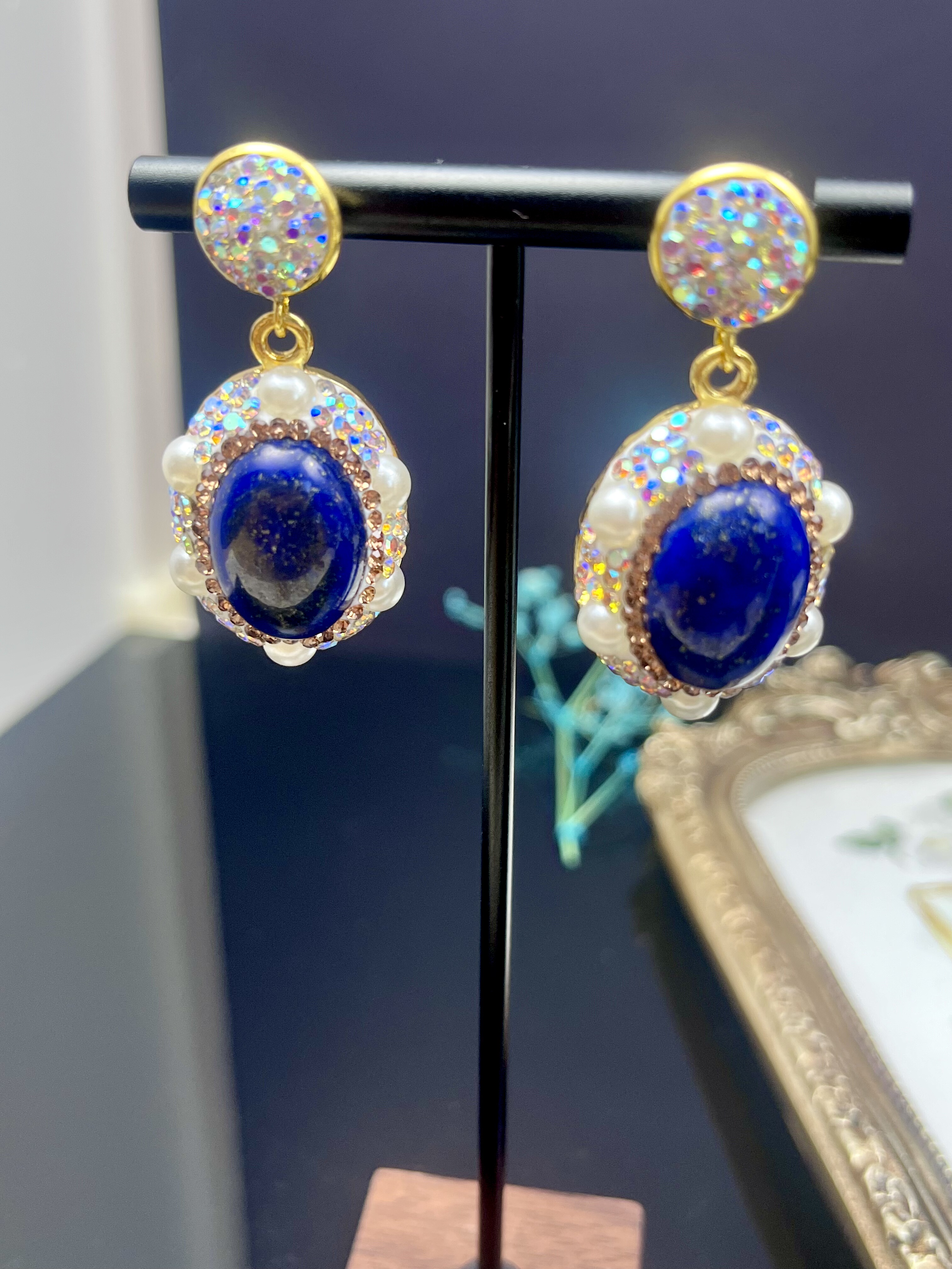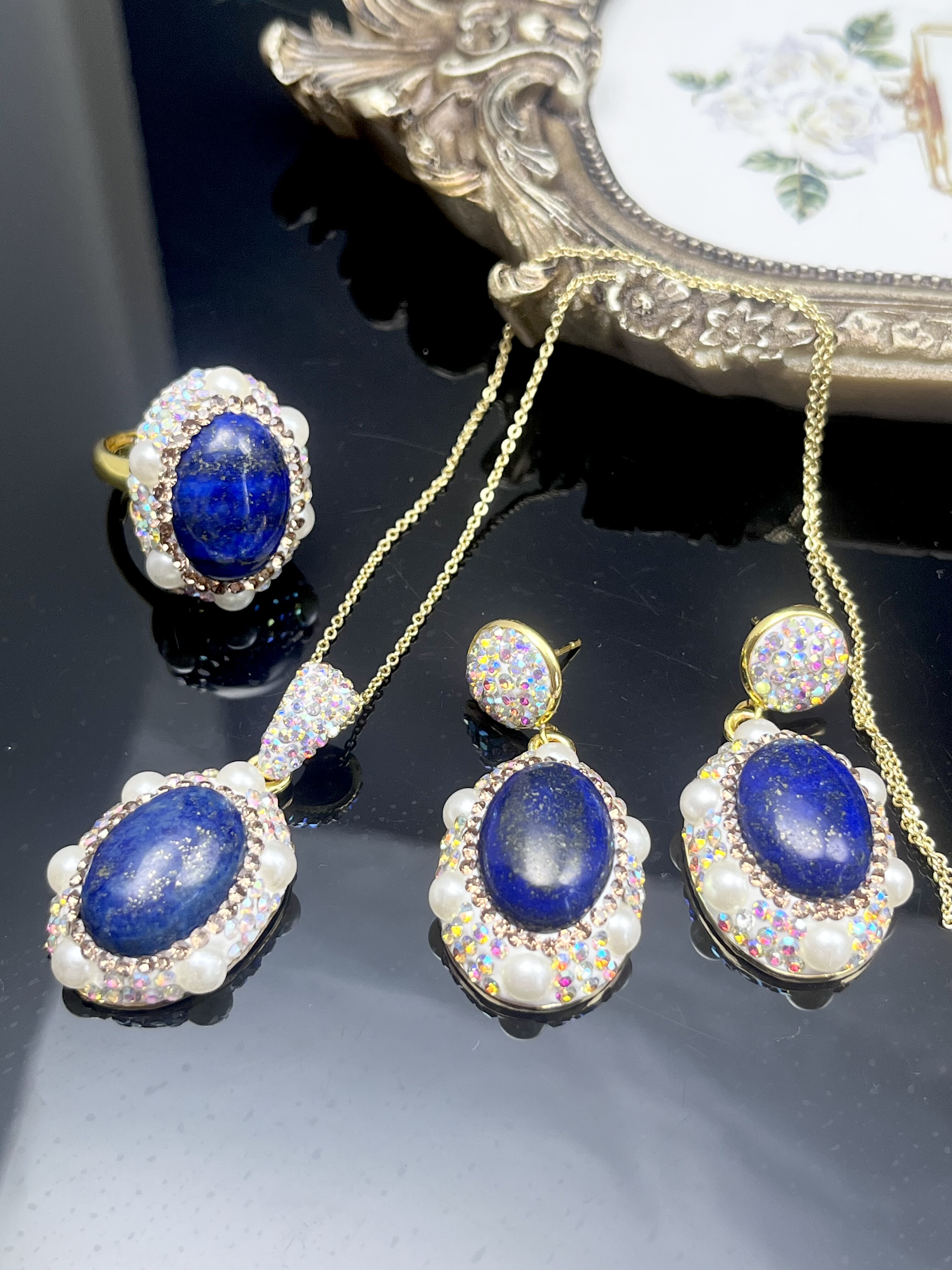 新款青金石耳钉套装项链戒指项链镶嵌设计感高级感气质百搭