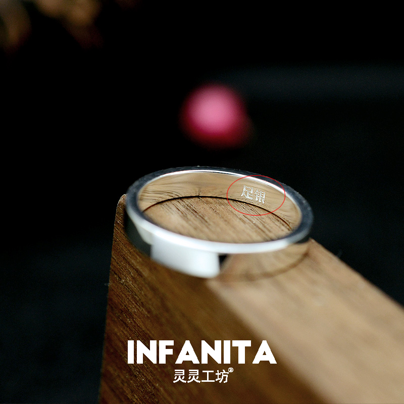 INFANITA足银光面戒指女男情侣对戒原创简约指环纯银时尚潮人首饰