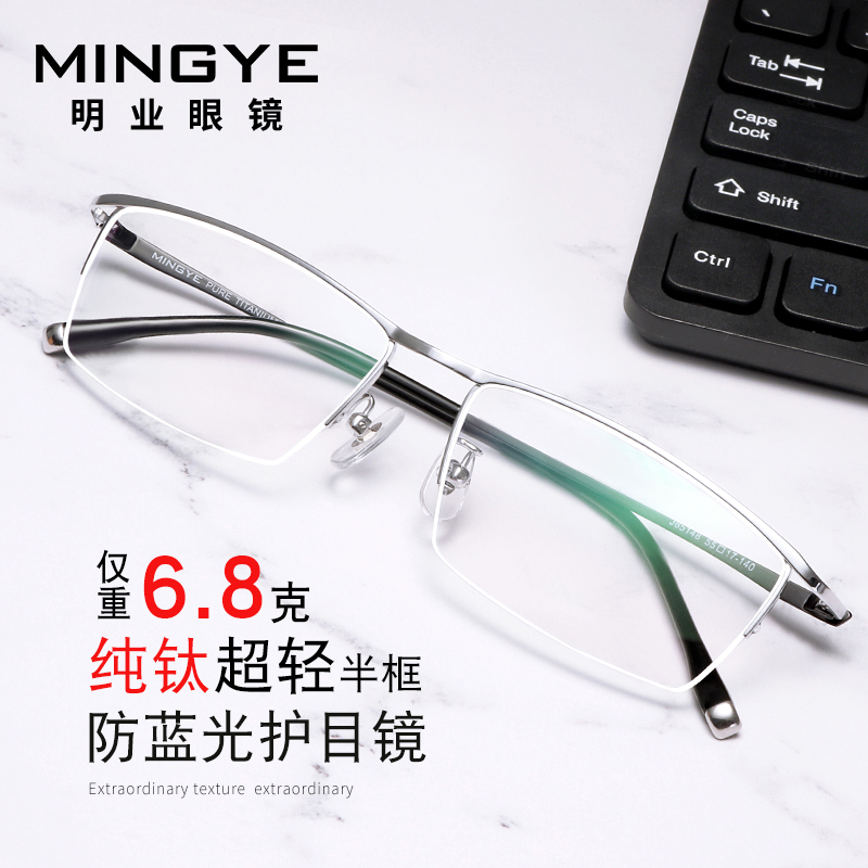 纯钛防雾防辐射眼镜男手机电脑抗蓝光疲劳平光无度数护目近视眼睛