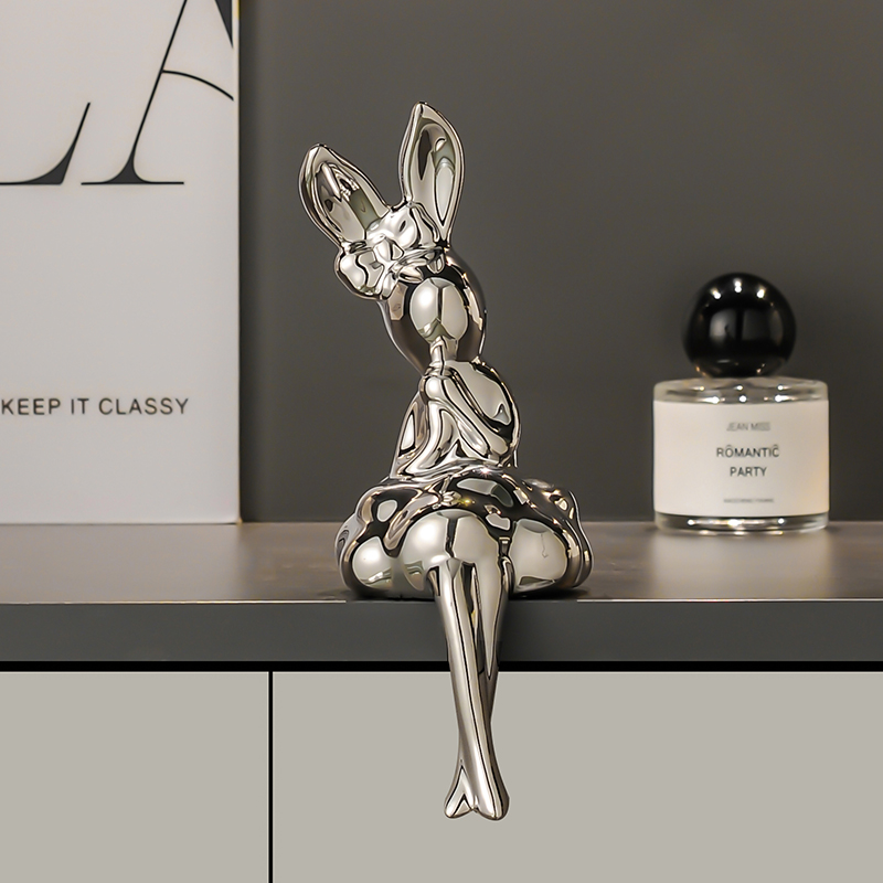 高级感兔子坐姿小摆件轻奢高档软装家居客厅电视柜酒柜桌面装饰品