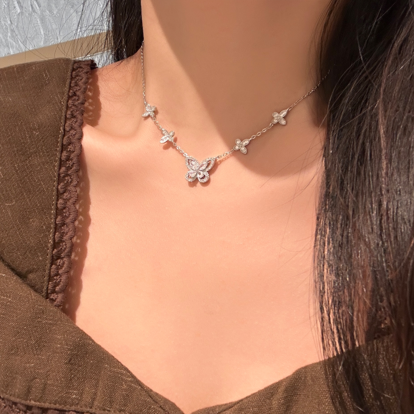 浪漫甜美微镶闪钻幻影蝴蝶项链精致轻奢高级感镶钻锁骨链短款颈链