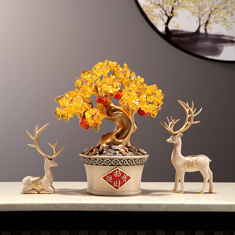 摇钱树新中式满载而归招财鹿摆件办公室前台金元宝装饰品开业礼物