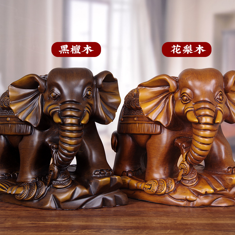 实木雕招财吉祥大象摆件家居客厅酒柜玄关装饰办公室桌面财福大象